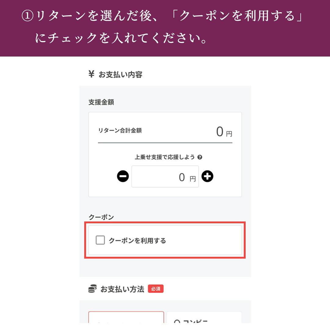 クーポン利用ページ:https://camp-fire.jp/projects/876300/view?ctoken=l6iPZgm1fmMiV8cZ