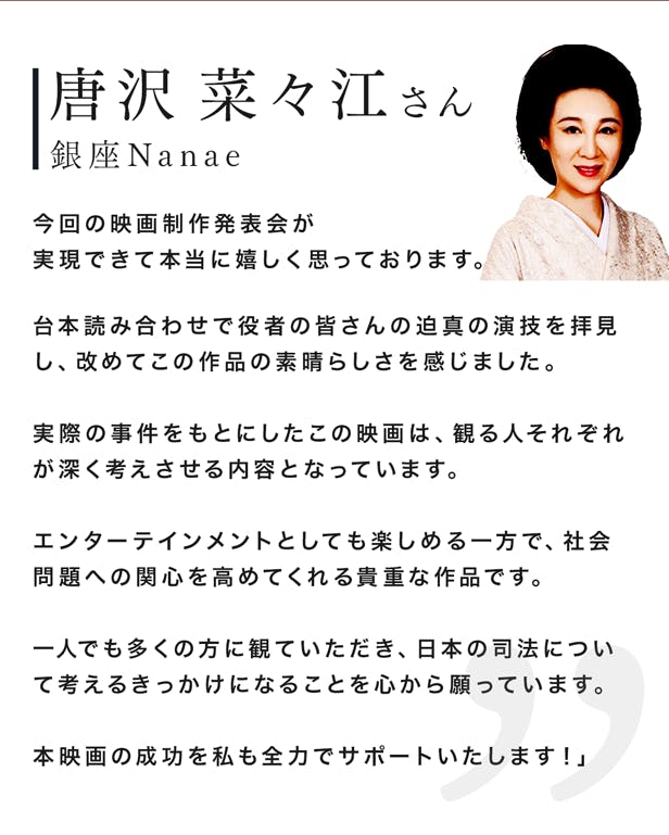 もし、この国の「正義」が誰かの思惑でねじ曲げられているとしたら?本作は監督・泊誠也が「冤罪はどのように生まれるのか」という根源的な問いに挑んだ社会派フィクション映画。司法の闇に光を当て、ニュースの裏側に潜む問題を描き出すことで、観る人に「正義とは何か」を問いかけます。完成の為にお力をおかしください。