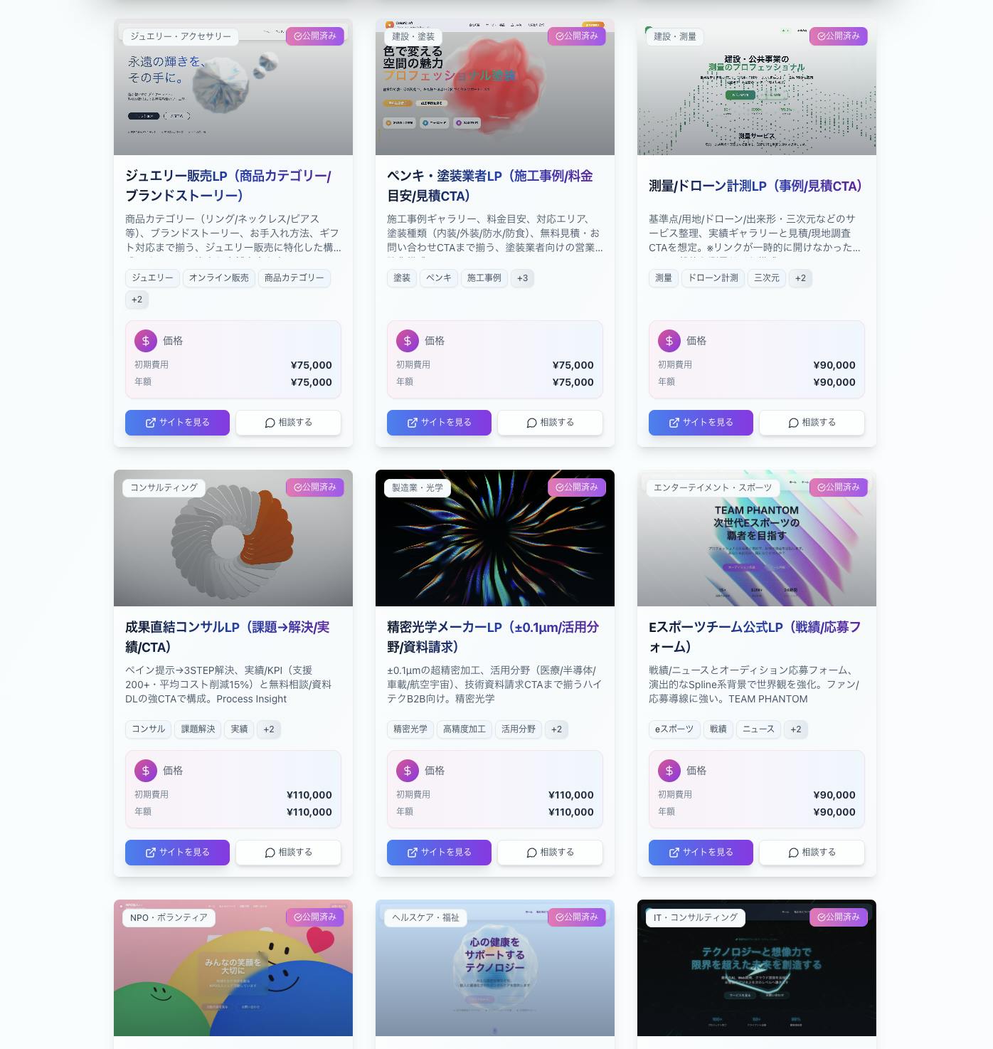 ・30点以上の掲載用ホームページが審査済み(医療/製造/SaaS/NPO/採用強化 等)