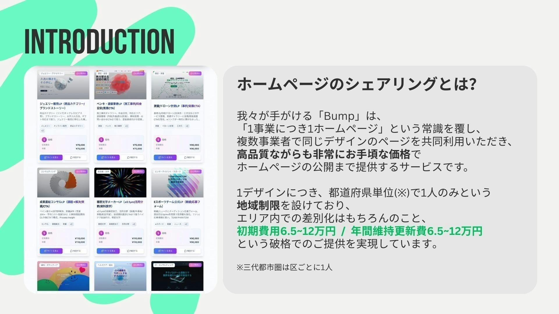 高品質なデザインを使用したWebサイトを【1県につき1事業者さま限定】でご提供。