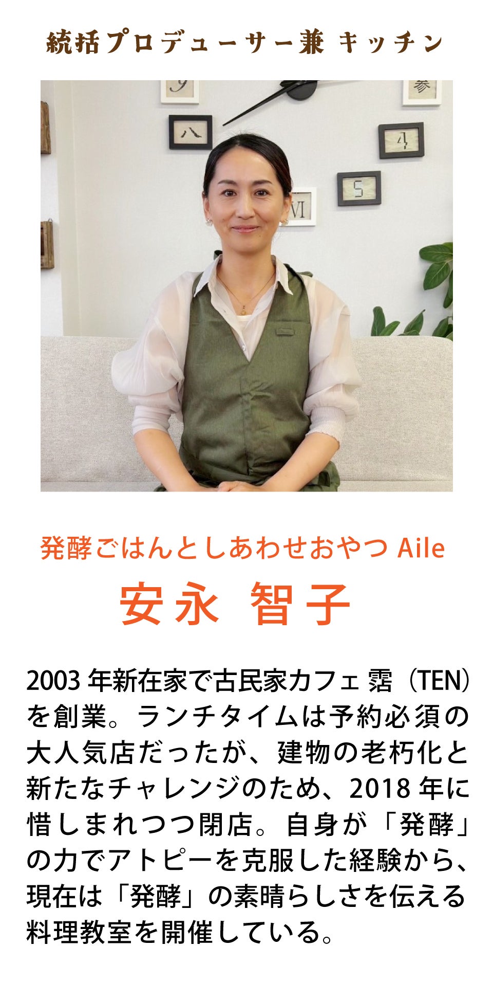 姫路の城西(新在家)で15年間大人気だった古民家カフェ霑(TEN)のオーナーで、実際にキッチンで料理を作っていた安永智子さんが、マルセイ発酵薬膳カフェの【統括プロデューサー兼キッチン】に就任!メニュー開発も担当してくれます!