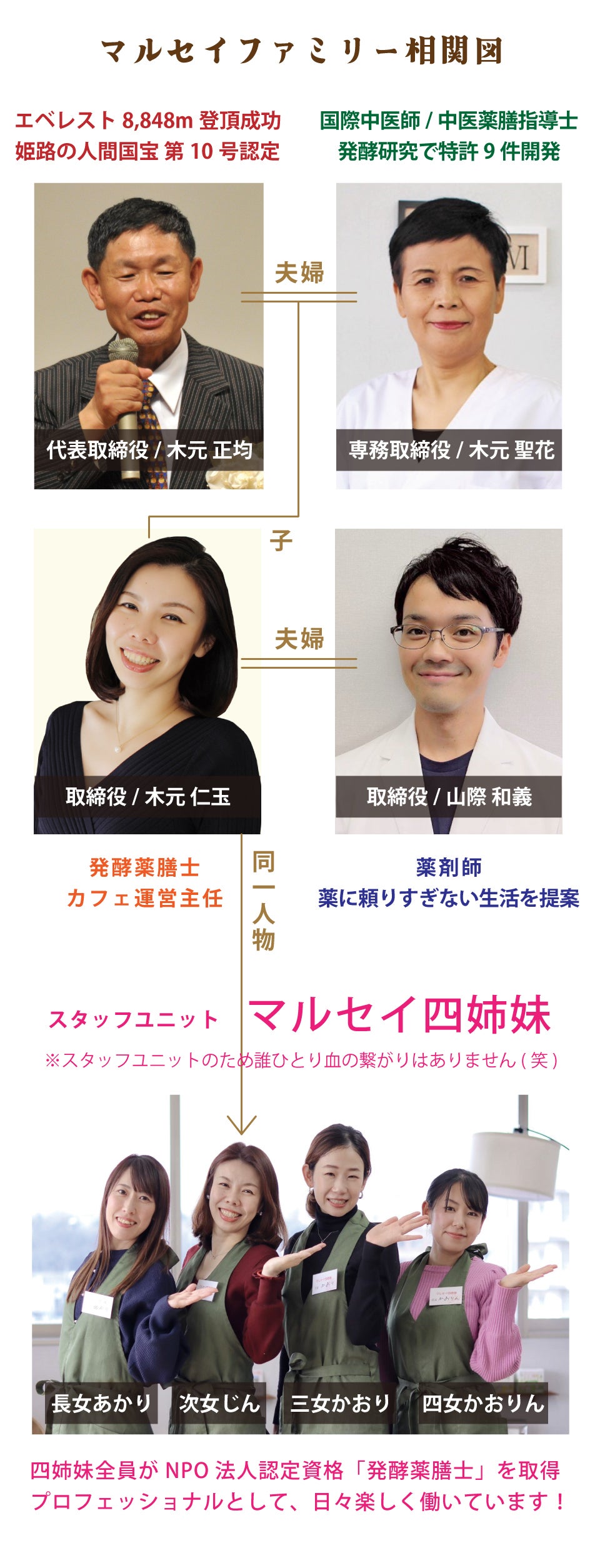 私たちのお仕事ですが、姫路創業24年目の漢方食品・発酵食品メーカーである株式会社マルセイを家族で経営しております。
