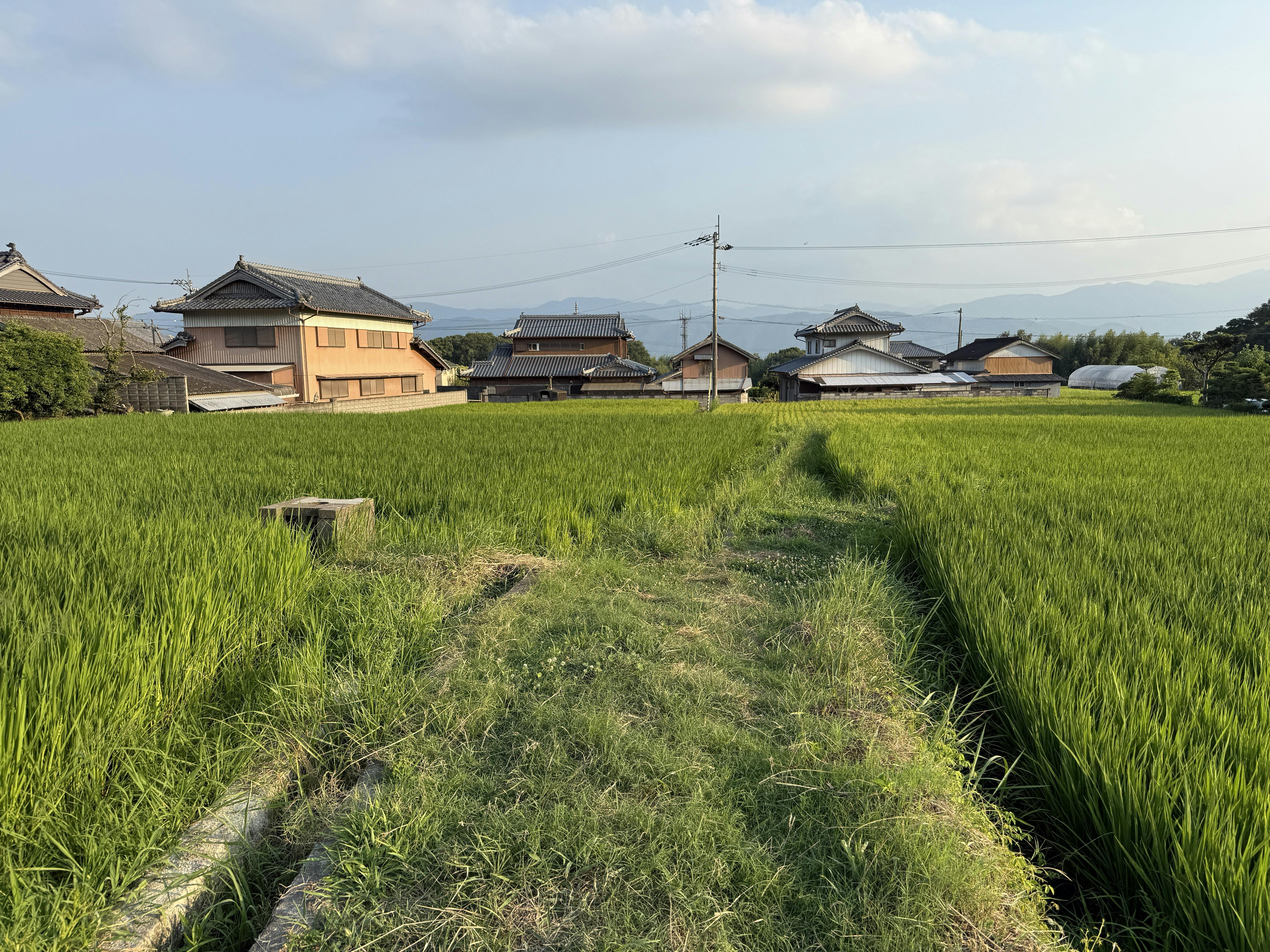8月頭の実家の田んぼ。夏真っ盛りの夕暮れ時。