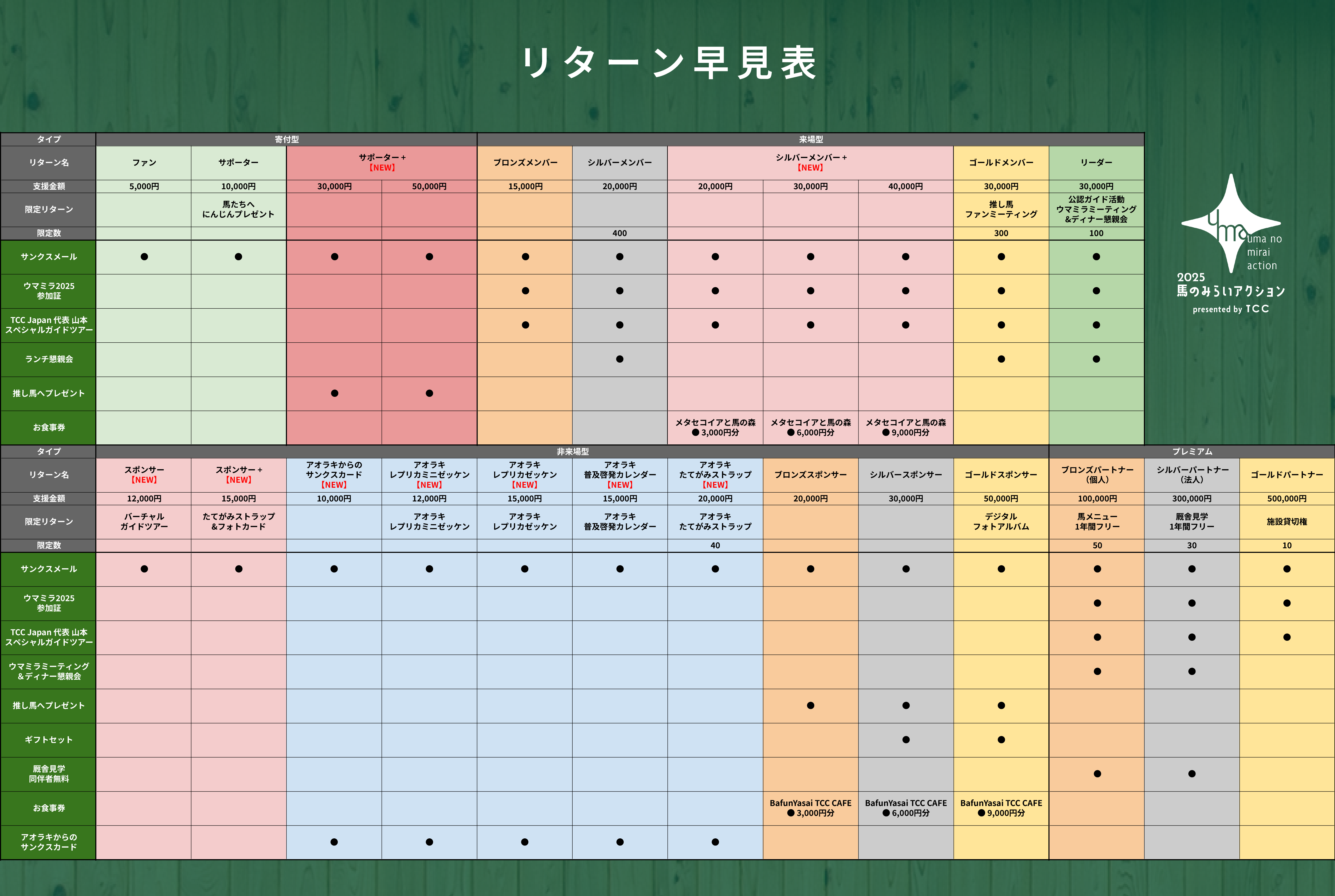 | 【NEW】ウマミラ2025 スポンサー | - | 12,000円 |