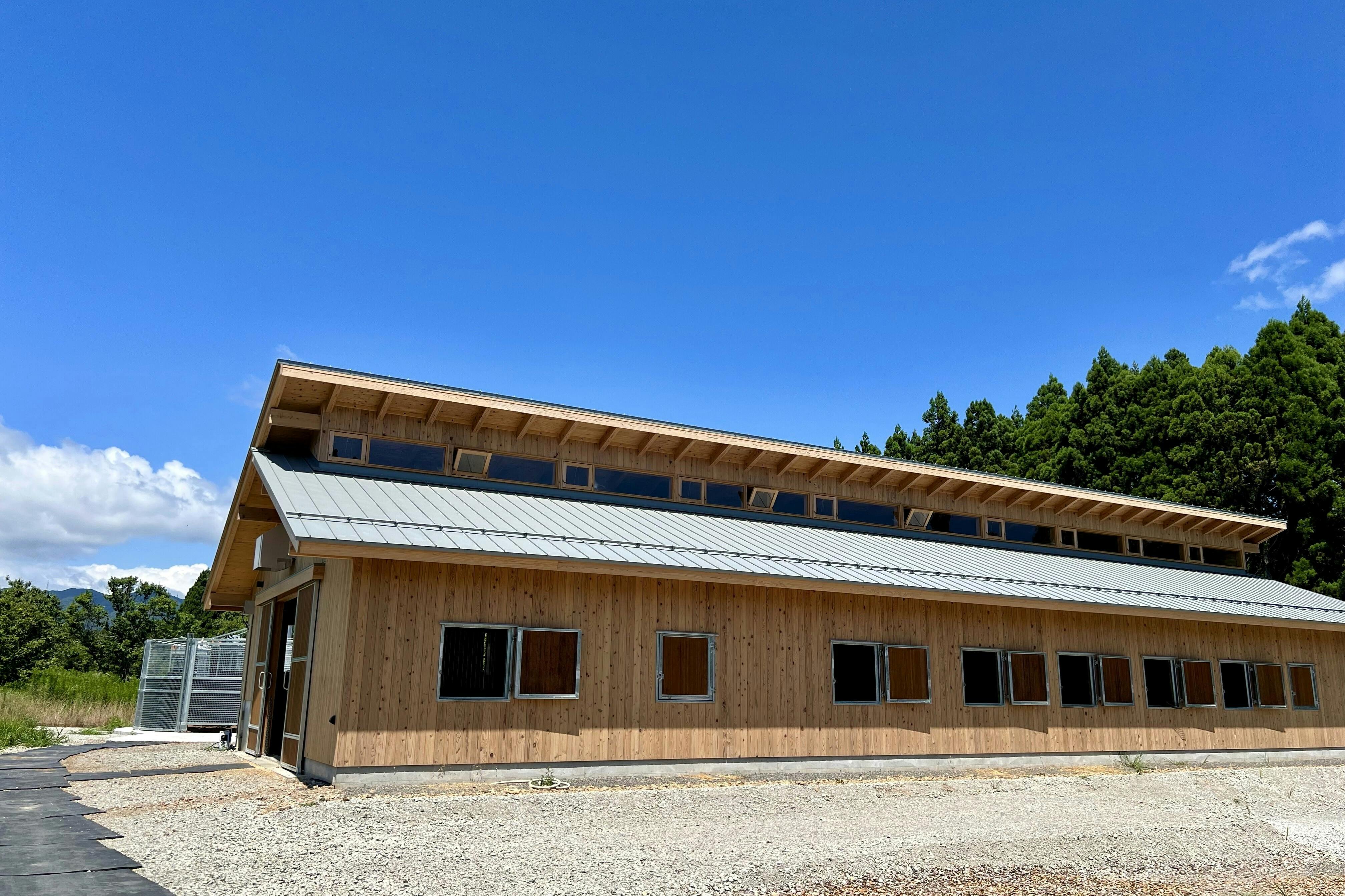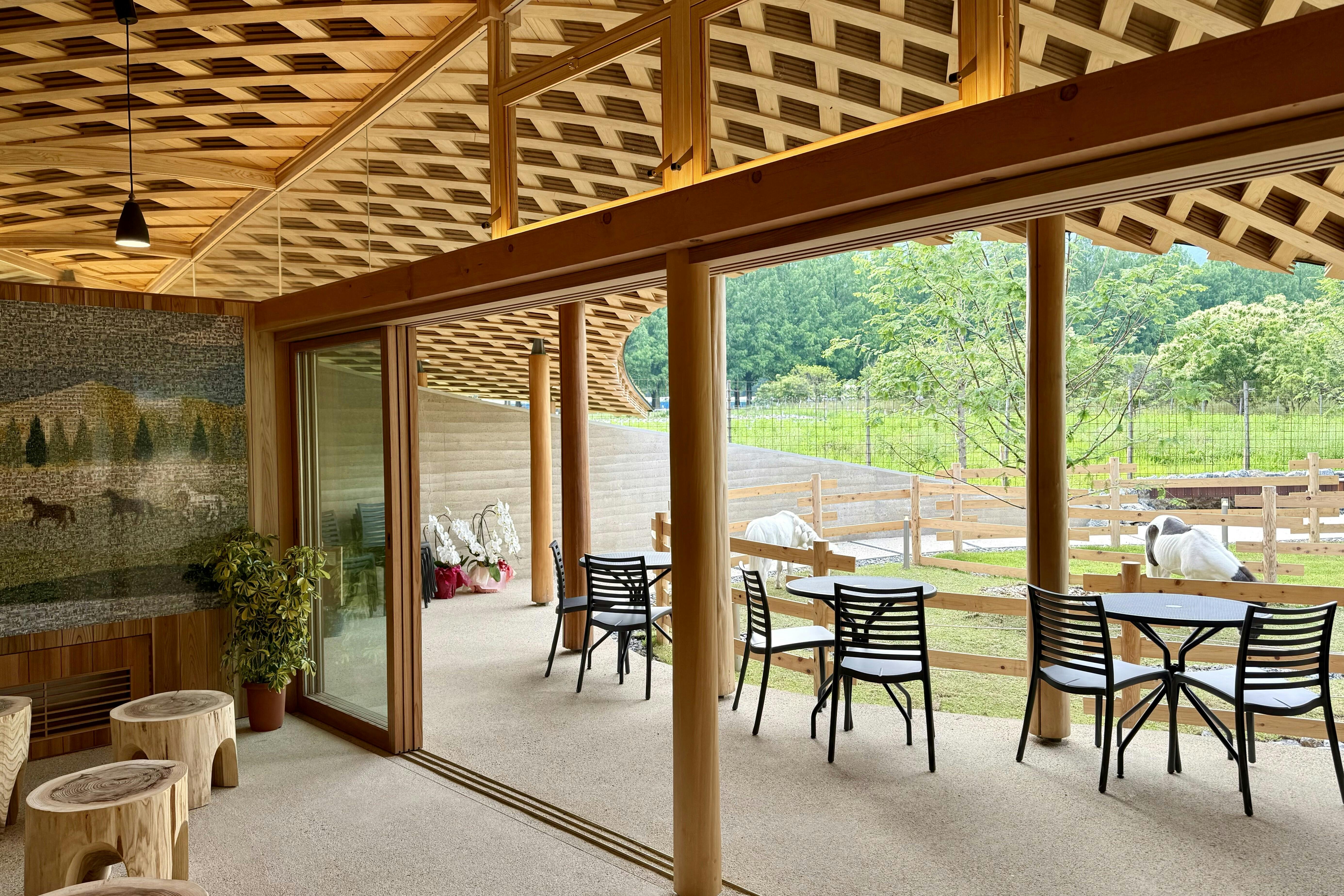 森に囲まれた「メタセコイアと馬の森」の厩舎