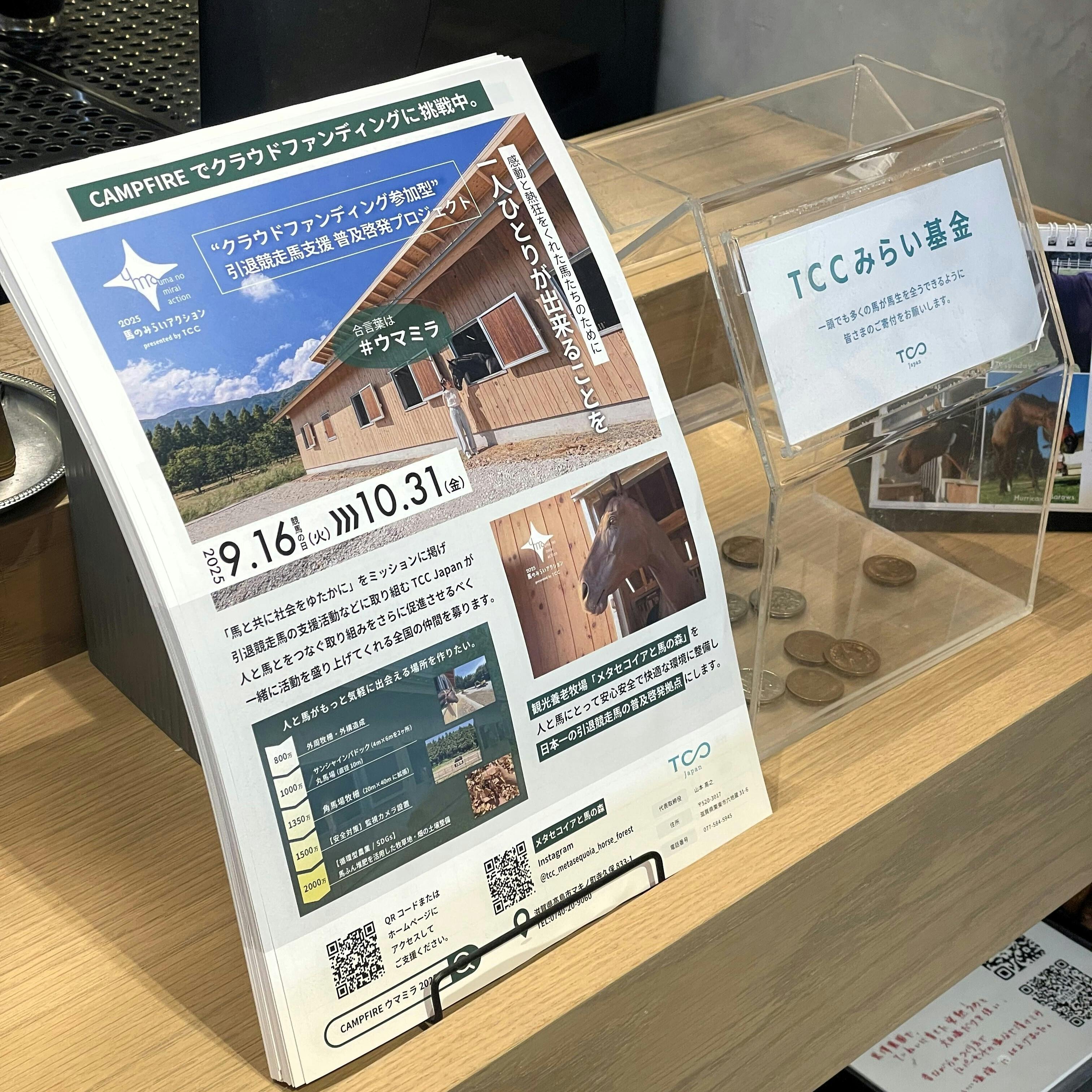 今回は "クラウドファンディング参加型" 引退競走馬支援 普及啓発プロジェクトとして、TCC Japan だけでなく、皆さまと一緒に "日本一の普及啓発拠点" をつくる取り組みです。
