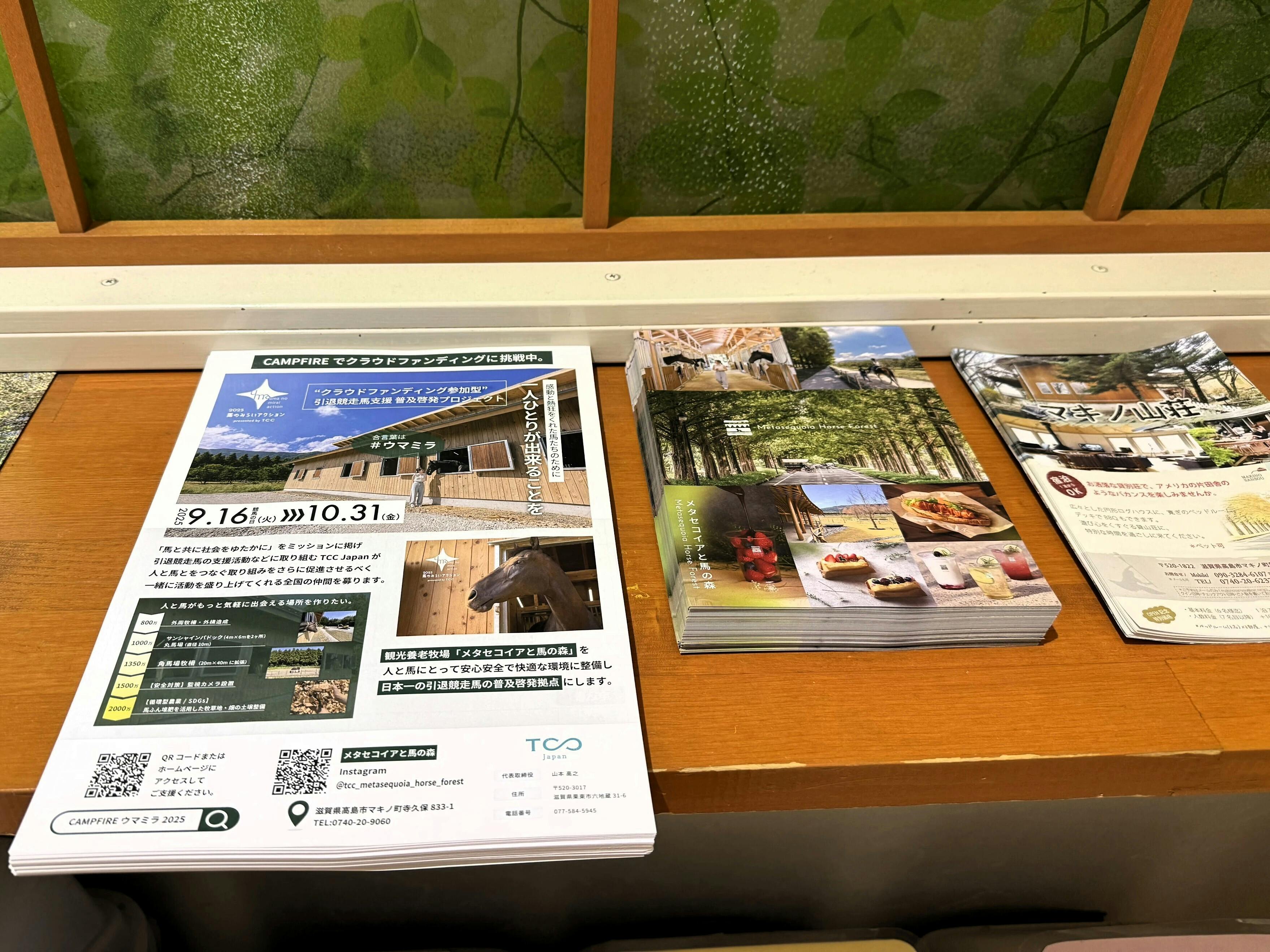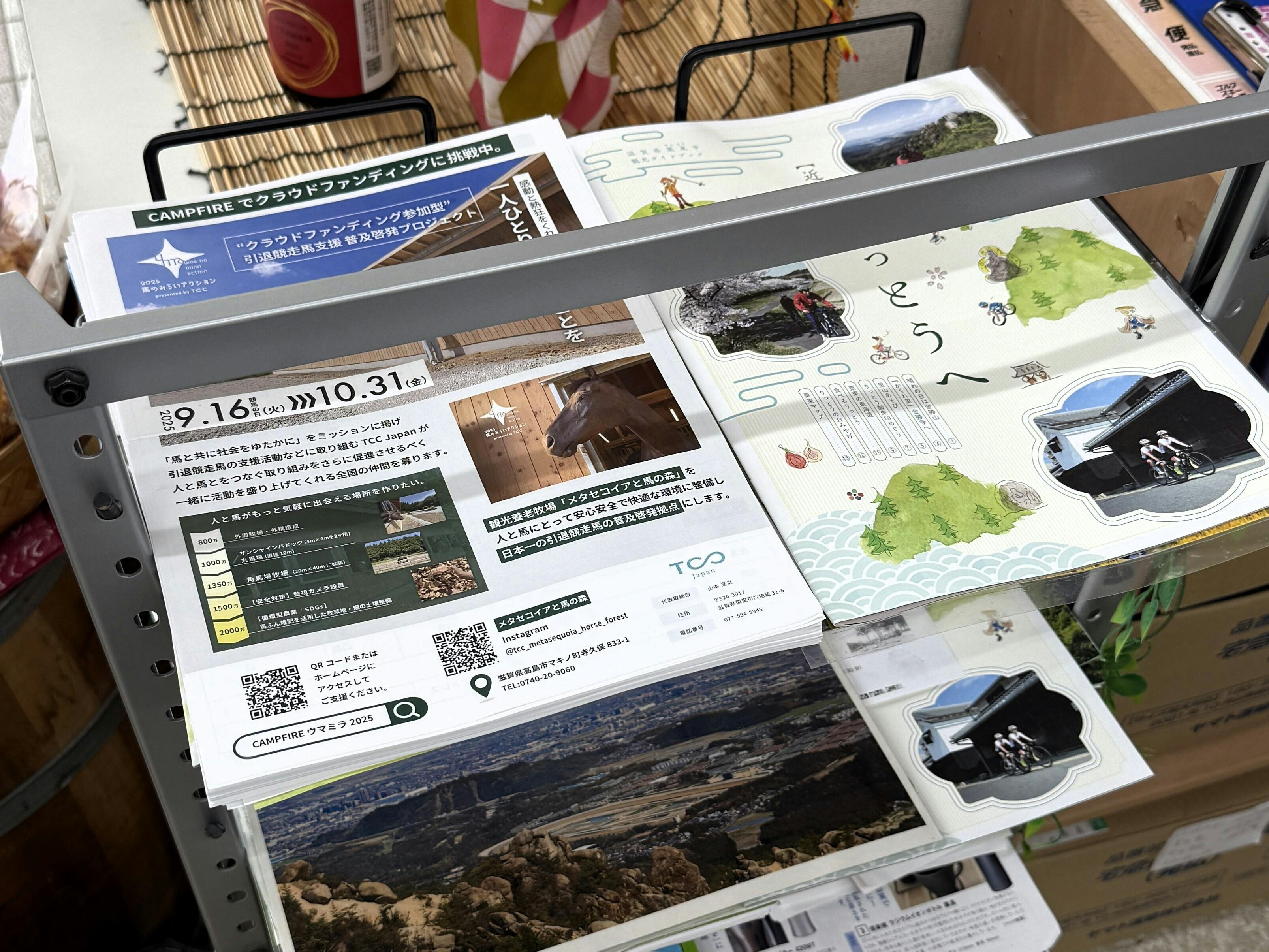 より多くの方にこの活動を知っていただき、観光養老牧場「メタセコイアと馬の森」に実際に足を運んでいただけるよう、現在「#馬のみらいアクション2025」フライヤー(兼 申込書)・ポスターを各地に設置・配布しています。