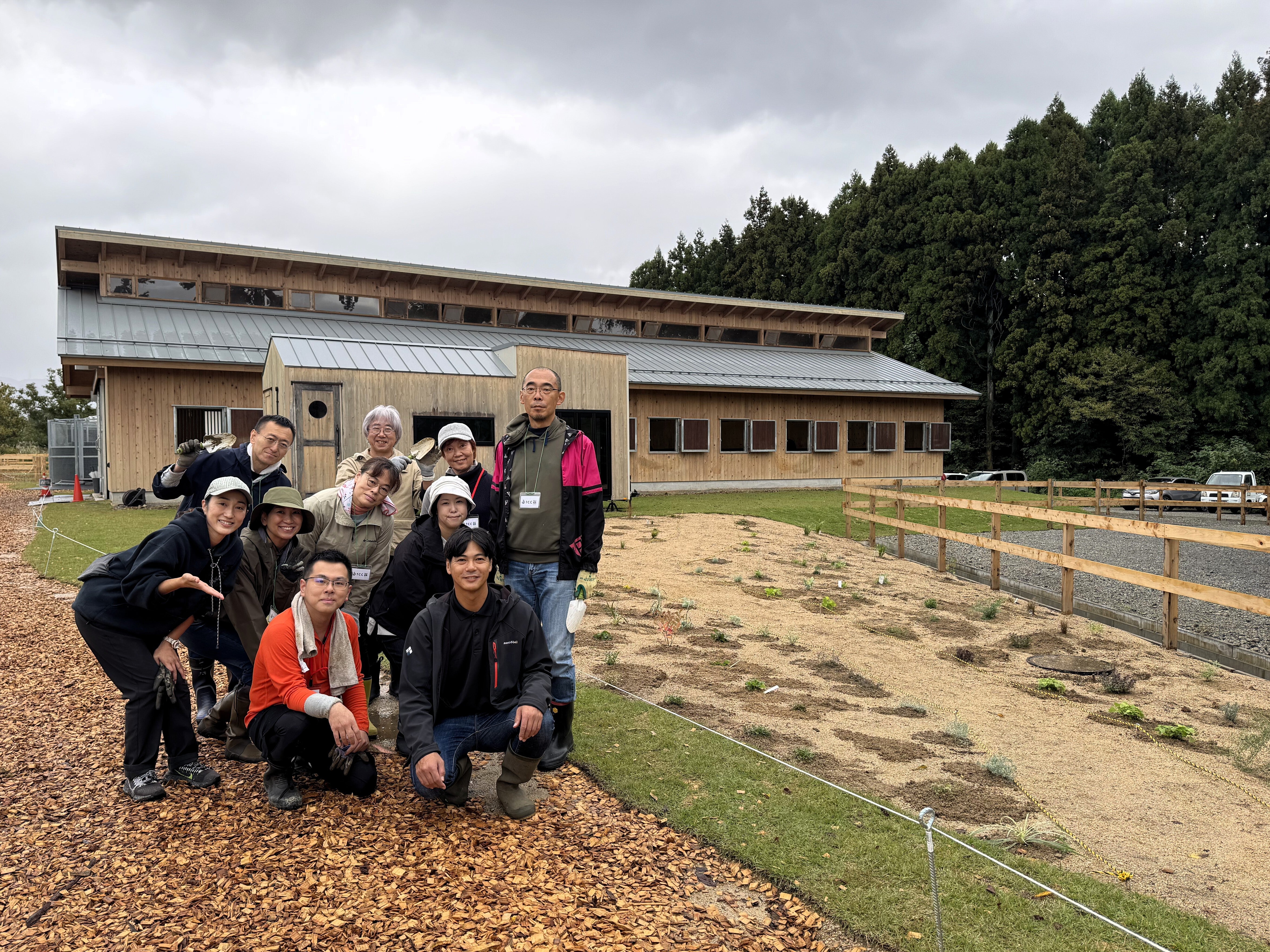 さて今月初めには、「メタセコイアと馬の森」のエントランスから厩舎エリアへ向かう通路脇、グリーンガーデンに苗や球根を植えるワークショップを開催しました。