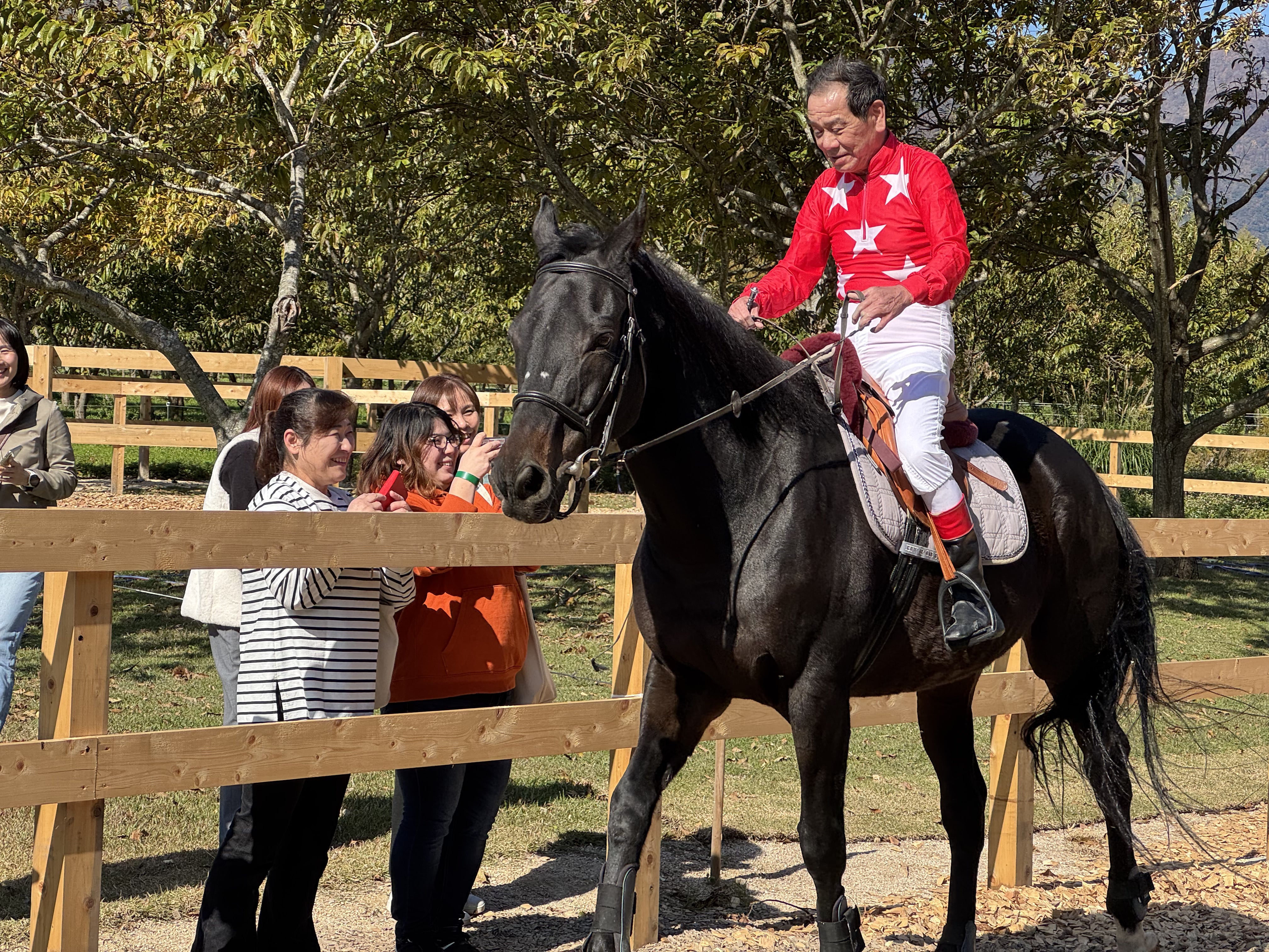 先日、大井競馬の的場 文男 元騎手が「メタセコイアと馬の森」に来場されました!