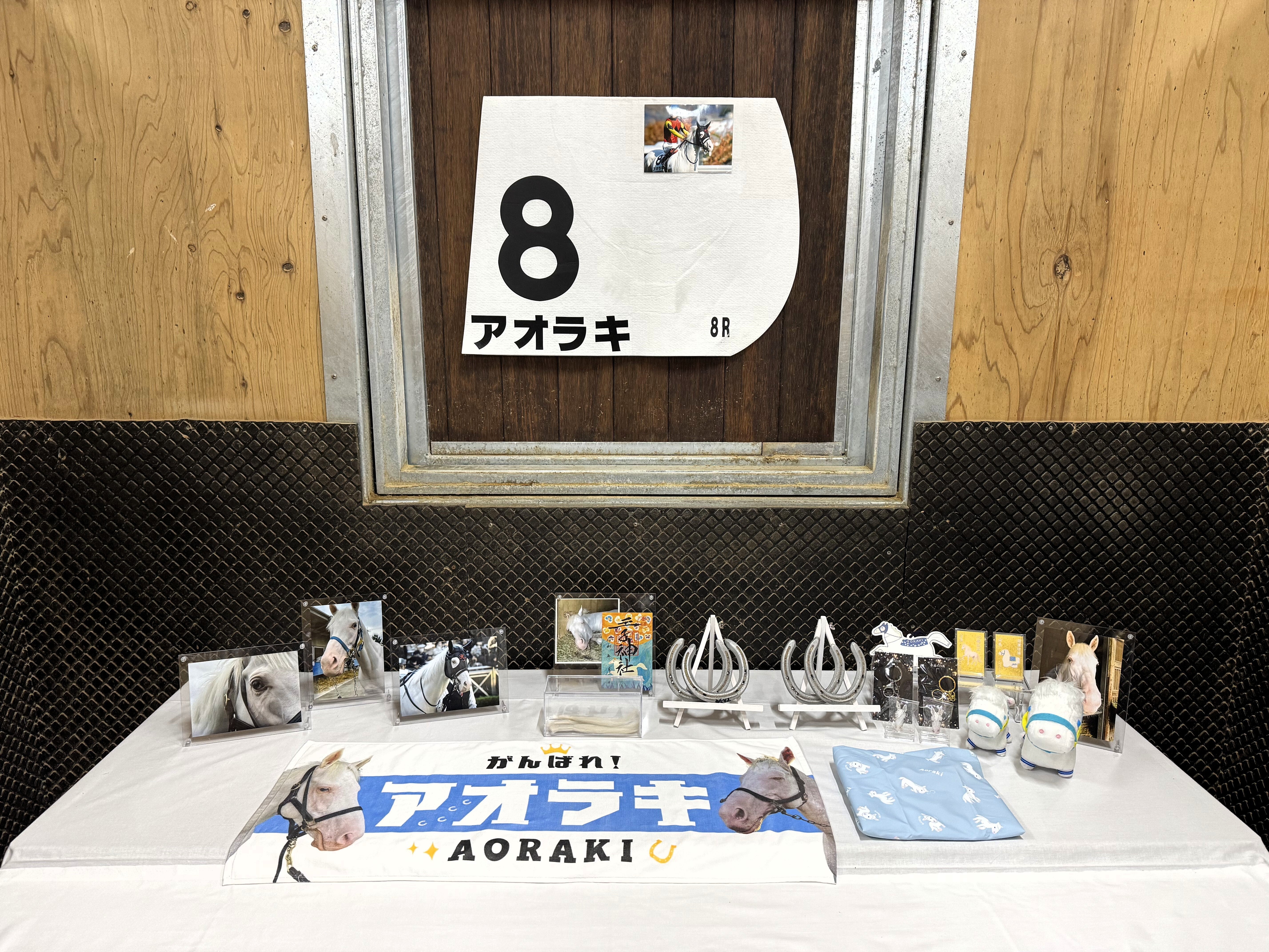 馬主さまのご厚意により、最終出走時のゼッケン・遺髪(たてがみ)・蹄鉄をはじめ、記念の品々を展示いたします。
