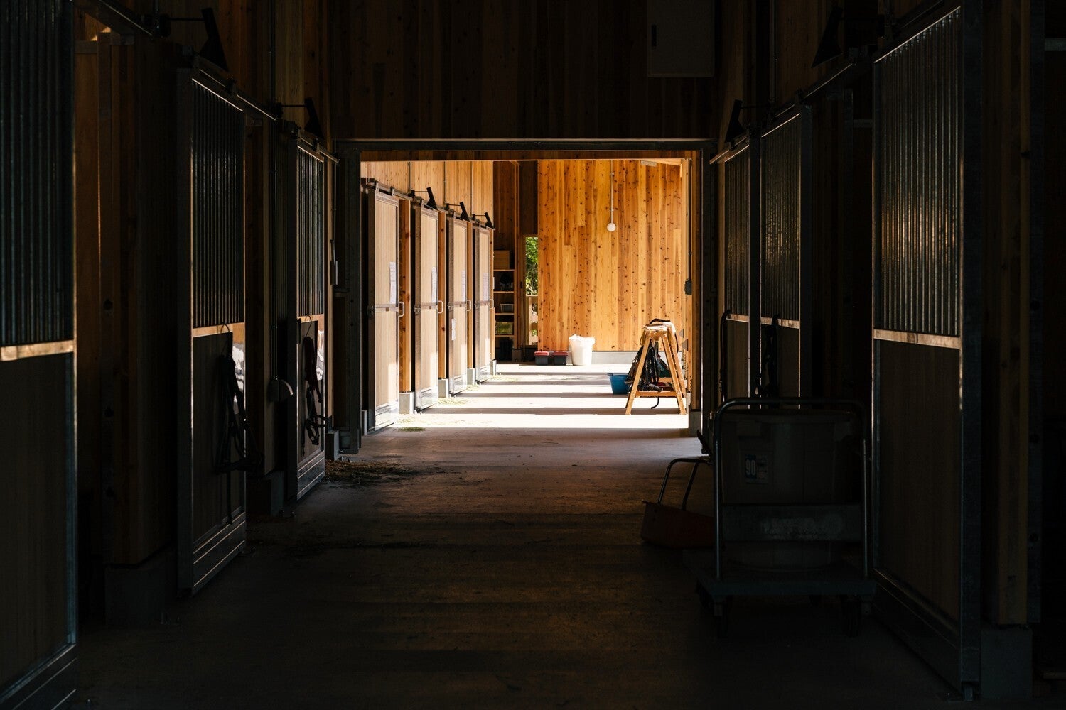 森に囲まれた「メタセコイアと馬の森」の厩舎
