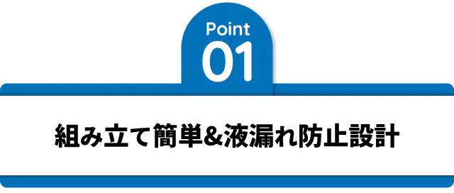 内部の漏斗構造により液体がスムーズに収まり、満杯になっても液漏れしない設計です。