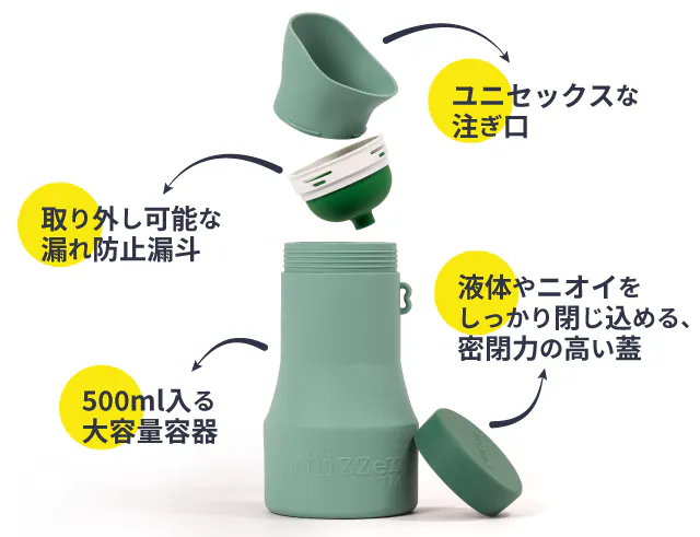主力製品のWhizzerは、漏れ防止構造と高品質なBPAフリー素材を採用し、繰り返し使えるエコ仕様。携帯性にも優れ、折りたたんでコンパクトに収納できるため、キャンプや車移動、フェス、災害時など、あらゆるシーンで活躍します。