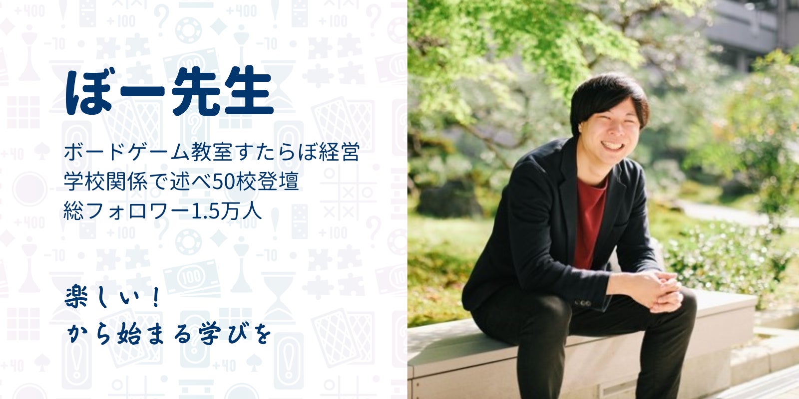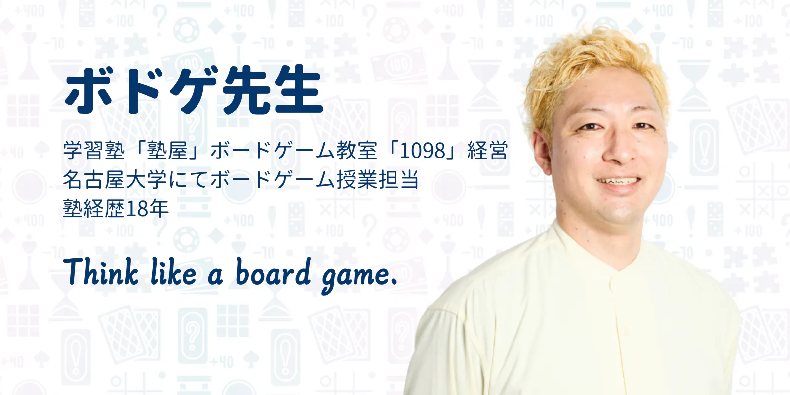 学習塾とボードゲーム教室の経営者|愛知教育大学で教育学を専攻。中堅学習塾の教務部長を最年少で務めた後、2007年に学習塾「塾屋」を起業。教科指導では補えない「教科ではない学習課題」をボードゲームを通じて解決できることに注目し、学習塾のなかでボードゲームを取り入れる。2022年からはボードゲームだけの習い事「ボードゲーム教室1098」を開校し、幼少期からボードゲームを通じた学びを提供しつつ、学習塾との共存/融合したカリキュラム構築を目指している。