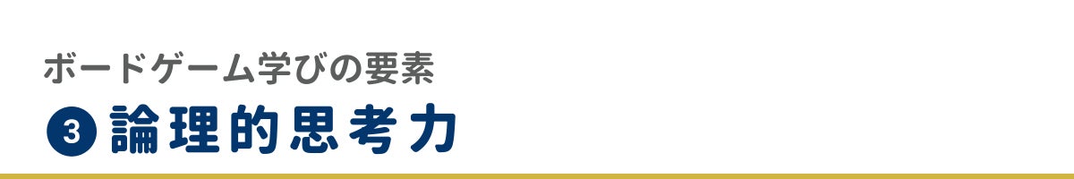 論理的思考力とは、ものごとを筋道立てて考えていく力。ボードゲームには『勝つ』という目的があります。プレーヤーは勝つために、そのときどきで情報を収集・分析し、計画・戦略・戦術を立てることが必要です。