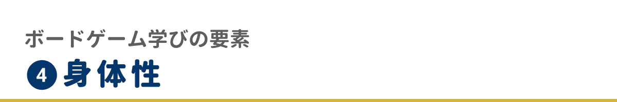 「身体性」には、ボードゲームのプレイを通じて培われる様々な身体的および感覚的な能力が含まれます。