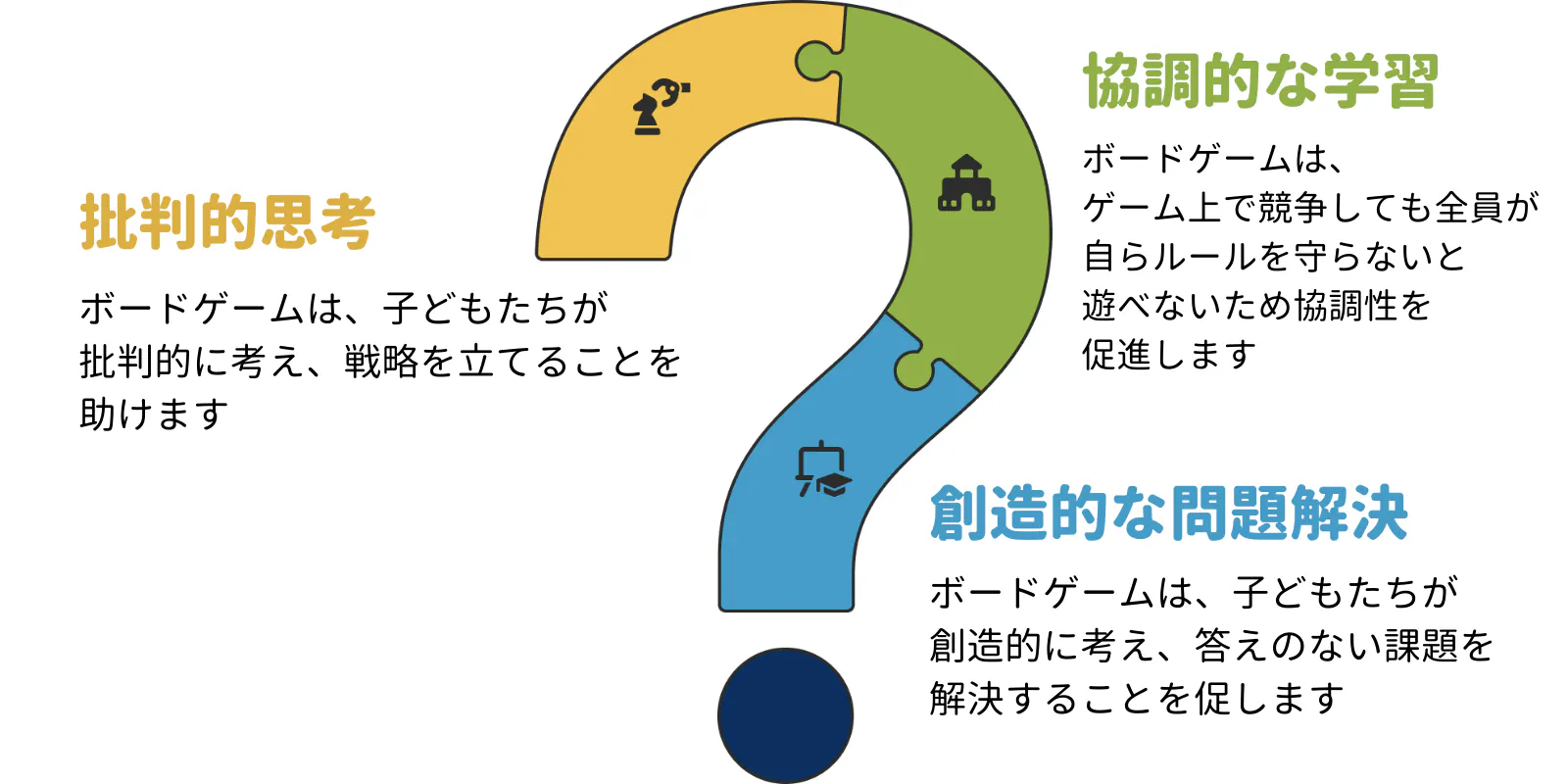 ボードゲームは、ルールを理解し、自分で考えて選択・行動する「小さな実体験」。