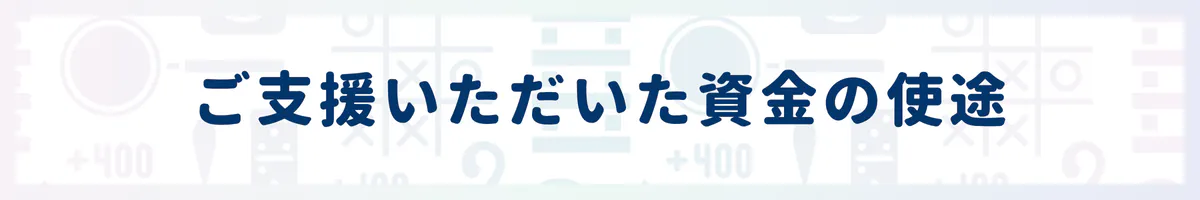 皆様からご支援いただいた資金は、以下の費用として大切に活用させていただきます。