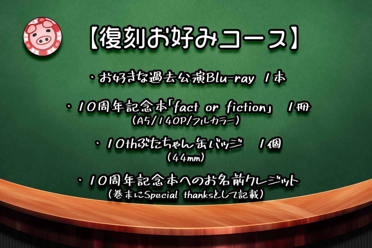 他、10周年バージョン缶バッジ、5周年記念本の復刻や、公演Blu-rayの復刻など