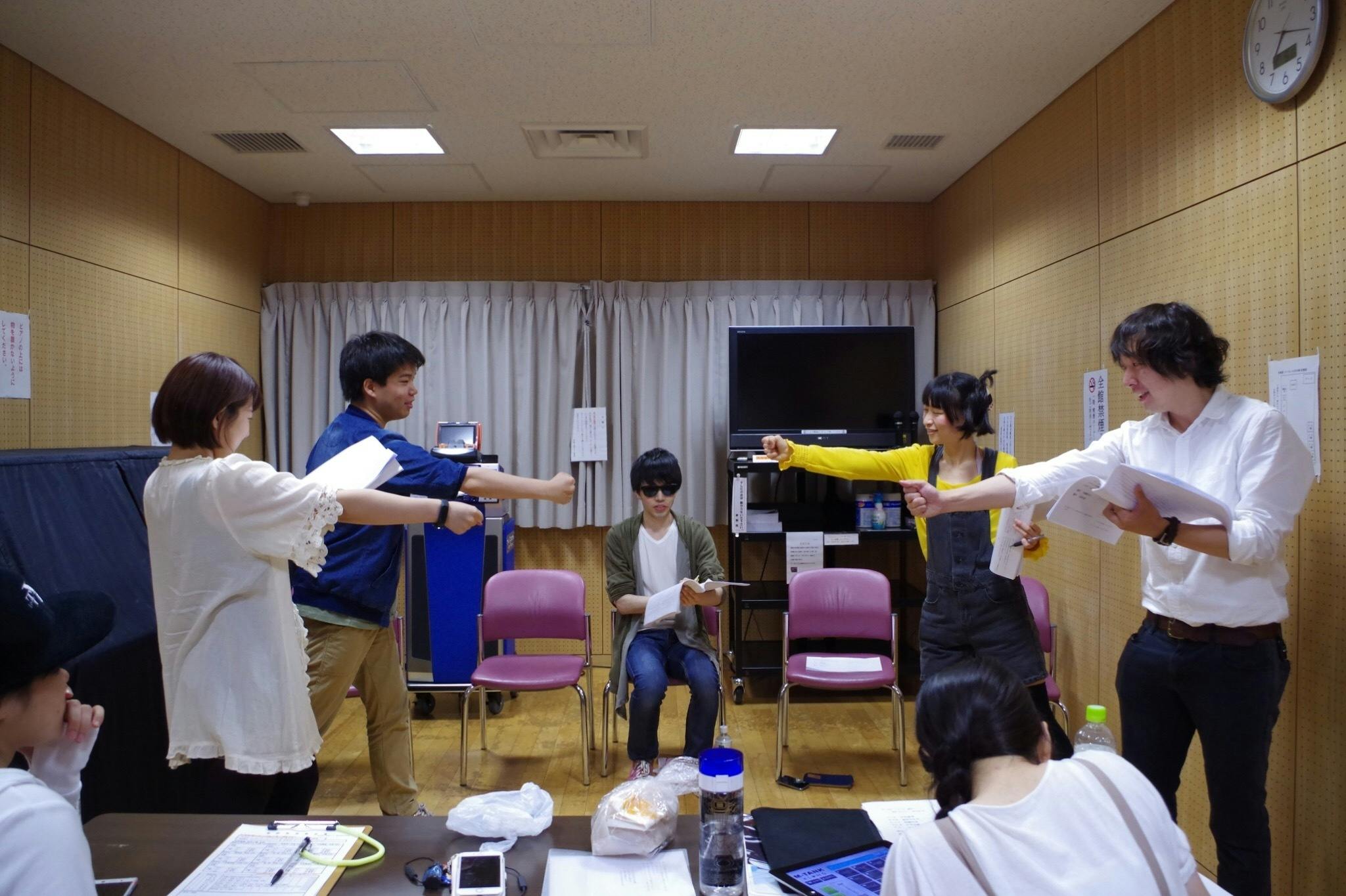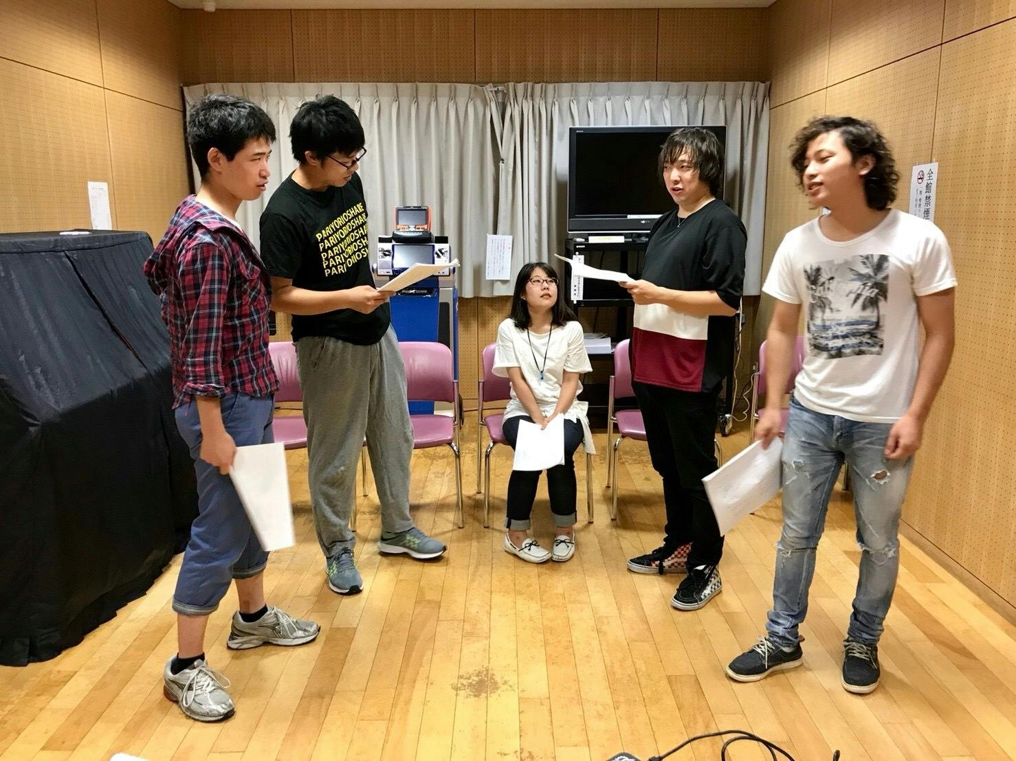稽古風景より。あくまで朗読劇なので台本を持っている。