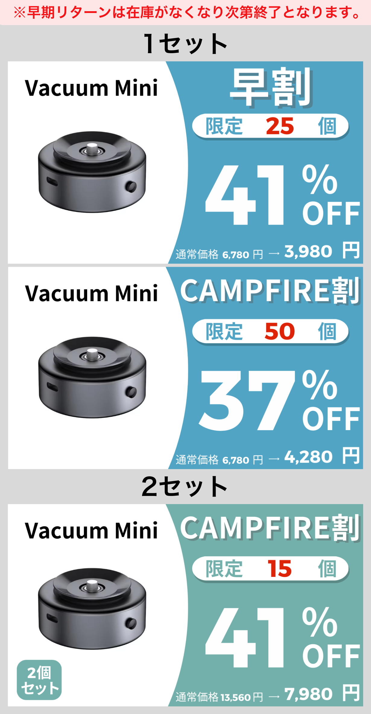※早期リターンは在庫がなくなり次第終了となります。