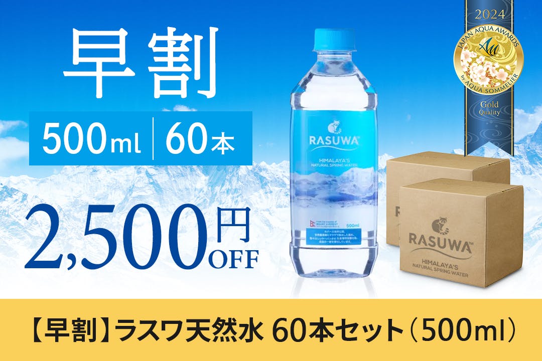 ラスワ天然水60本セット(500ml)をお送りさせていただきます。