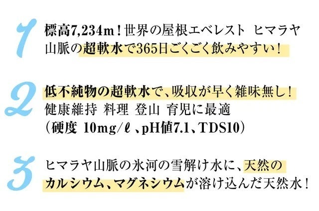 この水は、標高7,000mを超えるヒマラヤの源泉から時間をかけて自然に濾過された、まさに“地球からの贈り物”。