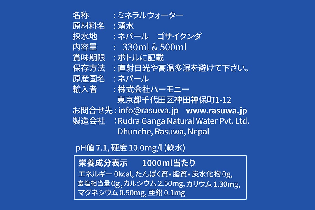 ヒマラヤの雄大な自然が何千年もの時をかけて育んだ、奇跡の水「ラスワ天然水」。