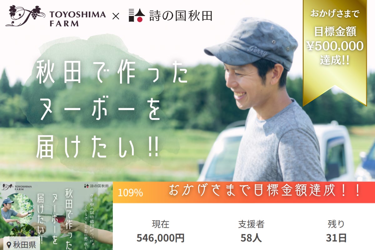 この挑戦を通じて、「ヌーボー」をはじめとする秋田県のワイン作りや農業、そして秋田の魅力をもっと多くの方に届けたいと思っています。引き続きの応援をどうぞよろしくお願いいたします!