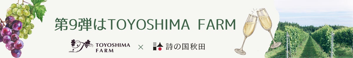 詩の国秋田は、厳選された秋田県産品の魅力を発信中。秋田の生産者とコラボする企画第9弾のお相手は、秋田県由利本荘市でブドウとワイン作りに励むTOYOSHIMA FARM株式会社。支えてくださる皆様へワイン作りで恩返しがしたいという思いからプロジェクトに挑戦します!