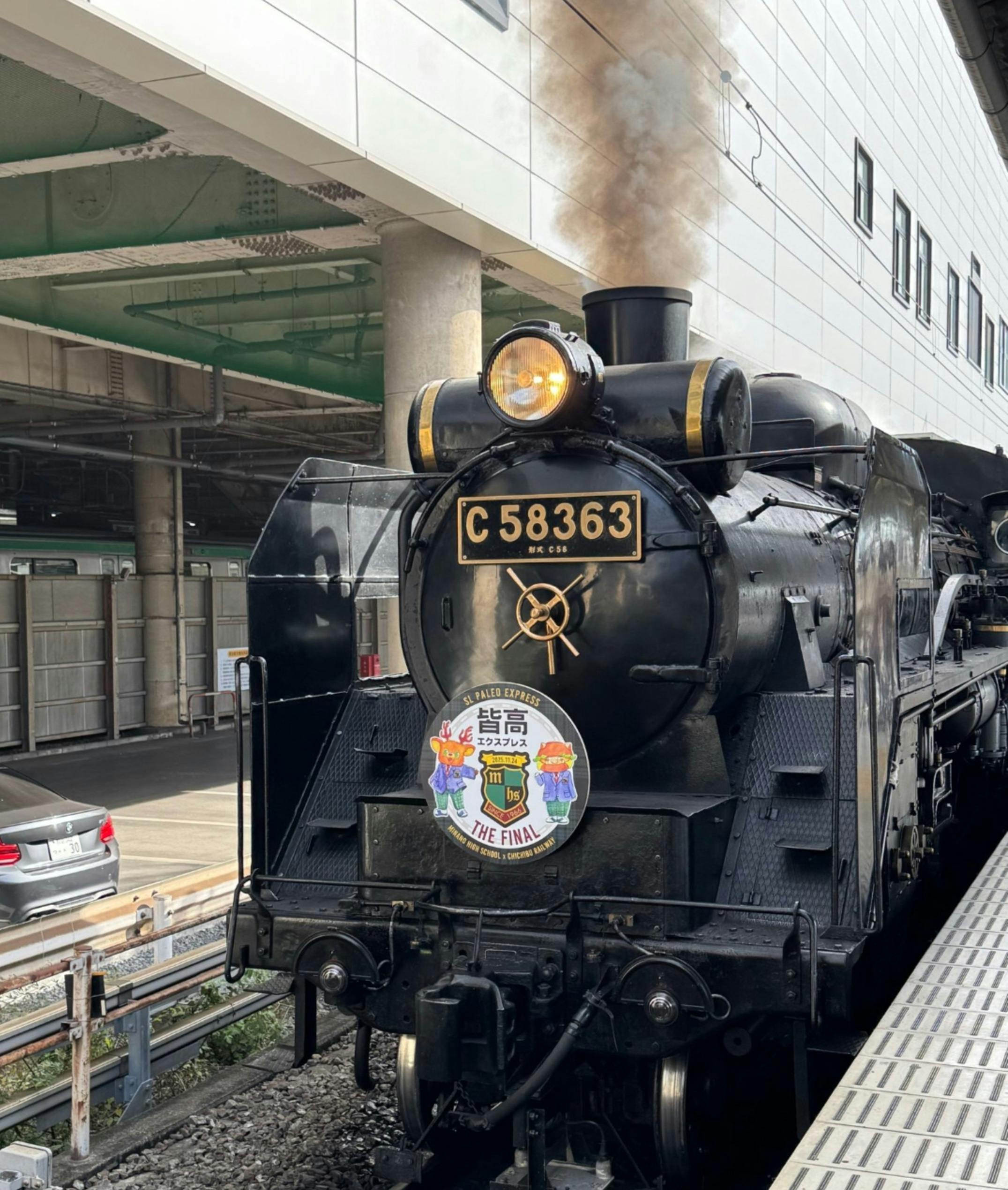 ↓7回目となる今回のSL先頭には、皆野高校マスコットキャラクター「イノシカくん」と「コウリくん」を描いたヘッドマークを掲出!汽笛を鳴らし煙をはきながら走る姿は圧巻°˖✧