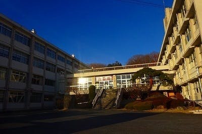 荒川の瀬の小高い丘に建つ校舎です。昨年10月には女性として世界初エベレスト登頂に成功した田部井淳子さんを描いたドラマ「てっぺんの向こうにあなたがいる」(主演:吉永小百合、監督:阪本順治)の全国一斉公開映画で皆野高校校舎を使っていただきました。