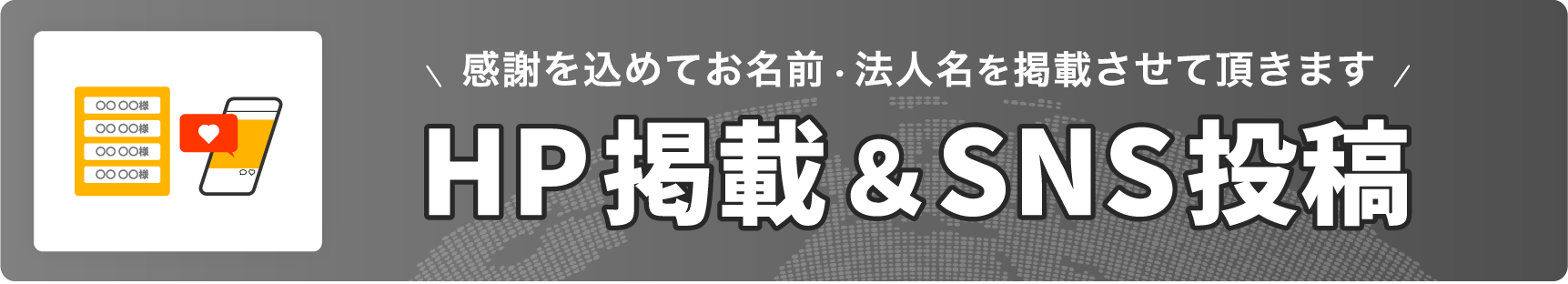 また、プランに応じて掲載した個人名/法人名を弊社のSNSにてご報告させて頂きます。