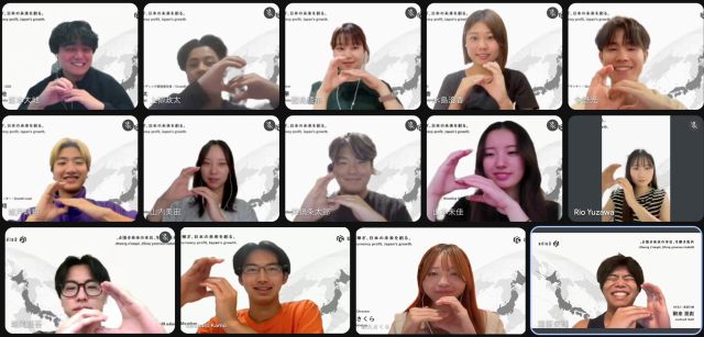 私たちの世代は「失われた数十年」という言葉を聞いて育ちました。平均年齢20歳の私たちは、これから数十年にわたって日本を担っていく世代です。過去を嘆くのではなく、未来を変える。そのためには、しがらみのない私たち若い世代が動くしかない。危機感を持ちながらも、日本が再び海外に価値を提供し、外貨を稼げる国になるという確信を持って挑戦します。