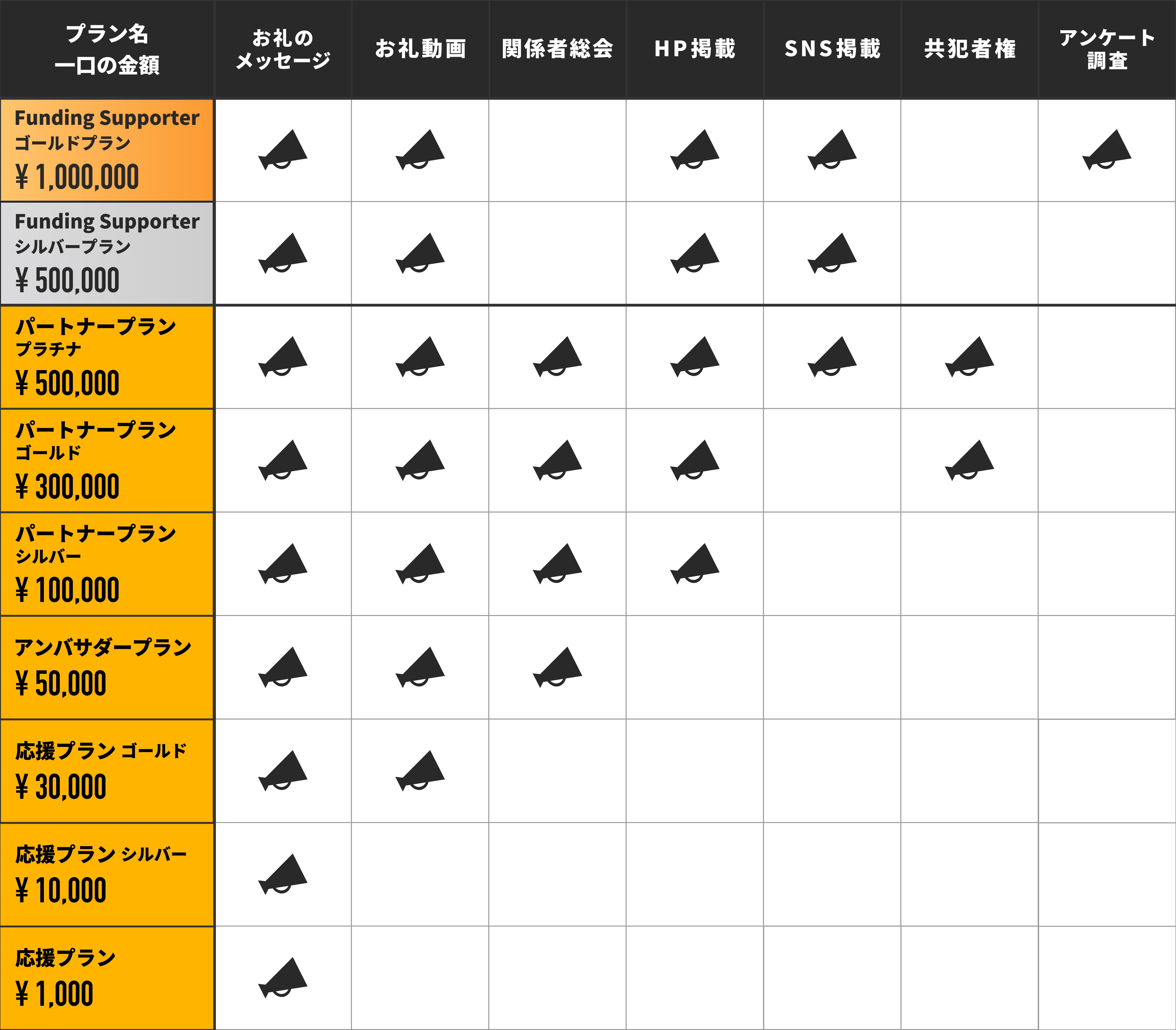 リターンのご紹介をします。下記のリターンを組み合わせてプランを作成しております。
