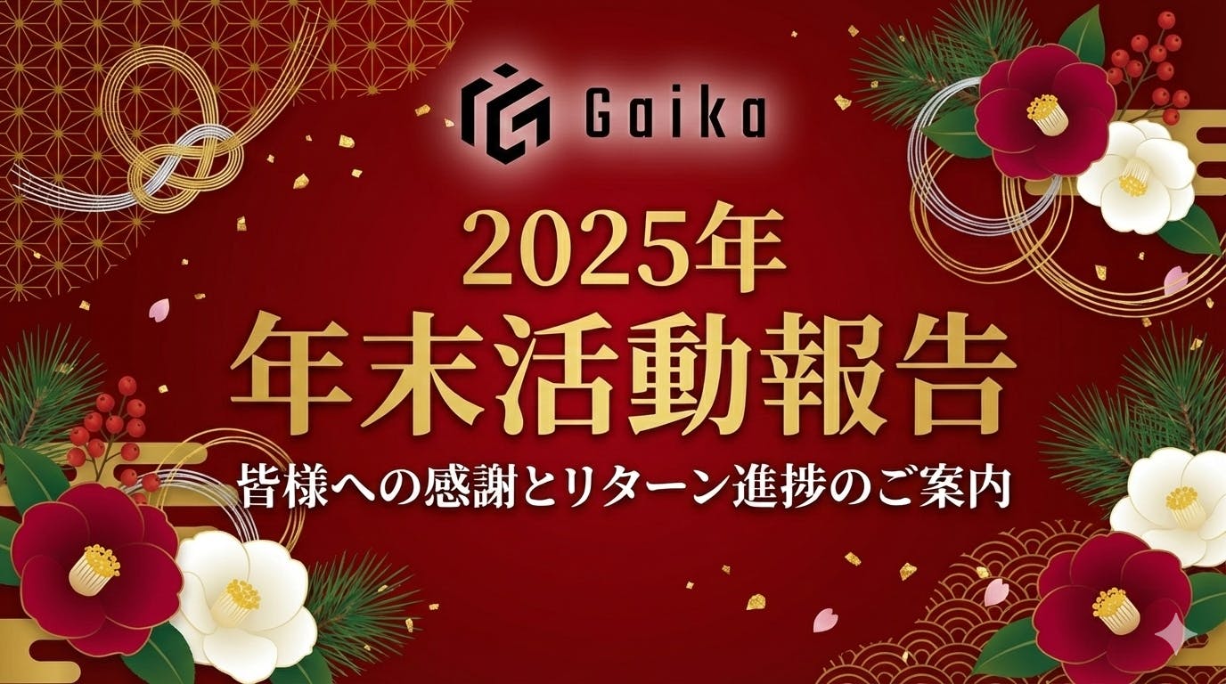 2025/12/31 18:00お世話になっております。 株式会社Gaika代表の坂本大地です。 2025年もいよいよ年の瀬を迎えました。 本年最後の活動報告として、皆さまへの心からの感謝と、現在進めておりますリターン発送に関する現在の状況をご報告させていただきます。 改めまして、本プロジェクトにご賛同・ご支援いただいた皆さま、誠にありがとうございました。 株式会社Gaikaは2025年8月に本格始動いたしました。このクラウドファンディングを通じて、本当に多くの方々から「お前らを応援したい」「Gaikaの挑戦を支えたい」という温かいお言葉とご支援を賜りました。支援者の皆さまの存在こそが、僕たちの挑戦の原動力です! 【リターンに関する進捗とご案内】現在、各リターンにつきましては、チーム一同着実に準備を進めております。Gaikaの2026年の幕開けとともに、「1月上旬」より順次、反映・ご案内をさせていただきます。新年の到着を今しばらくお待ちいただけますと幸いです。 2025年は、Gaikaにとって「挑戦のスタートライン」に立たせていただいた一年でした。 来年は、皆さまからお預かりした「後押し」を何倍にもして返せるよう、一つひとつの活動を地道に積み重ねてまいります。本年は誠にありがとうございました。どうぞ良い年末年始をお過ごしください! 株式会社Gaika代表取締役社長 兼 CEO坂本大地 もっと見る