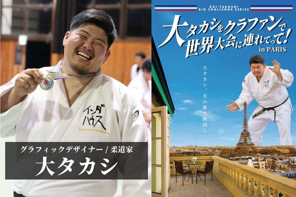 ・パリで大タカシが着用する衣服にスポンサーとして、特大サイズでプリントいたします。個人名やお店や企業のロゴでも可能です。