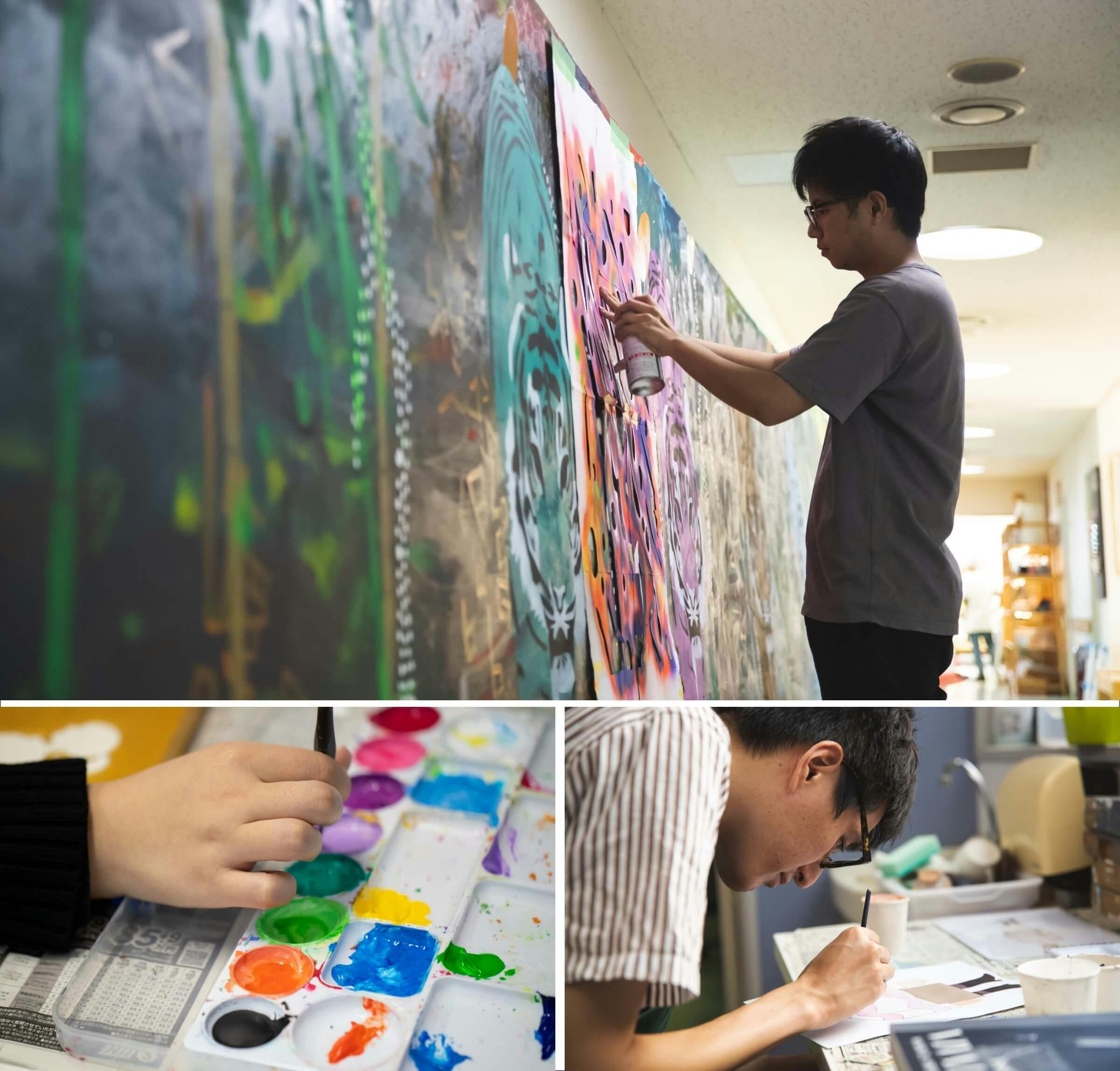 広々とした施設では、障がいのあるアーティストたちがのびのびと創作活動に打ち込んでいました。