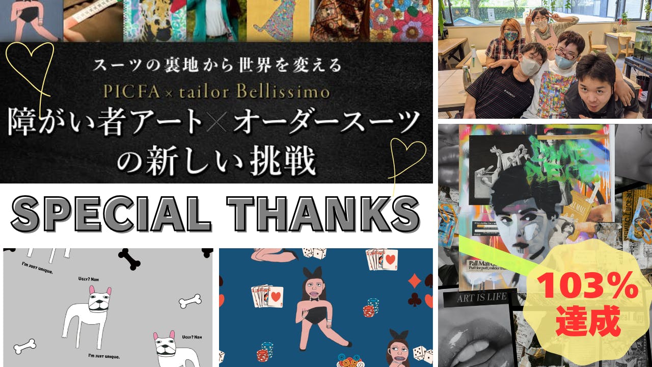 2025/10/23 10:51このたび実施しておりましたクラウドファンディングが、目標金額150万円に対し、1,546,500円という形で無事に終了いたしました。ご支援くださった皆さま、そしてSNSなどで拡散や応援のメッセージをくださった皆さま、本当にありがとうございました。心より感謝申し上げます。今回のプロジェクトは、「障がいのあるアーティストさんの作品をスーツの裏地として採用し、売上の一部を作家さんに還元する仕組みを作りたい。」——そんな想いから始まりました。スーツの裏地は、着る人だけだけが知る特別な場所。そこに、誰かの想いを、活動を、未来を応援するアートを宿せたら…そして、障がいのある方々の才能を社会にもっと自然に届けたい。そんな願いを込めての挑戦でした。皆さまからのご支援や温かいお言葉を通じて、この取り組みの意義を改めて感じることができました。そして何より、「共感の輪」が広がっていくことが、何より嬉しかったです。ここからは、いよいよスーツ裏地の制作・仕上げの段階に入ります。完成した作品や制作の様子は、今後の活動報告で随時お届けいたしますので、ぜひ楽しみにお待ちください。皆さまからの応援が、このプロジェクトの大きな力になりました。本当にありがとうございました。今回のプロジェクトを通じ、スーツをオーダーするビジネスパーソンたちにとって、着る社会貢献が当たり前となる未来を作っていきたいと考えています。引き続き、どうぞよろしくお願いいたします。 もっと見る