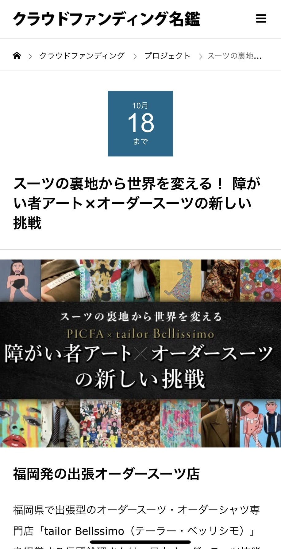 私の初めての挑戦である【スーツの裏側から世界を変える! 障がい者アート×オーダースーツの新しい挑戦】へご興味を持っていただき、本当にありがとうございます。