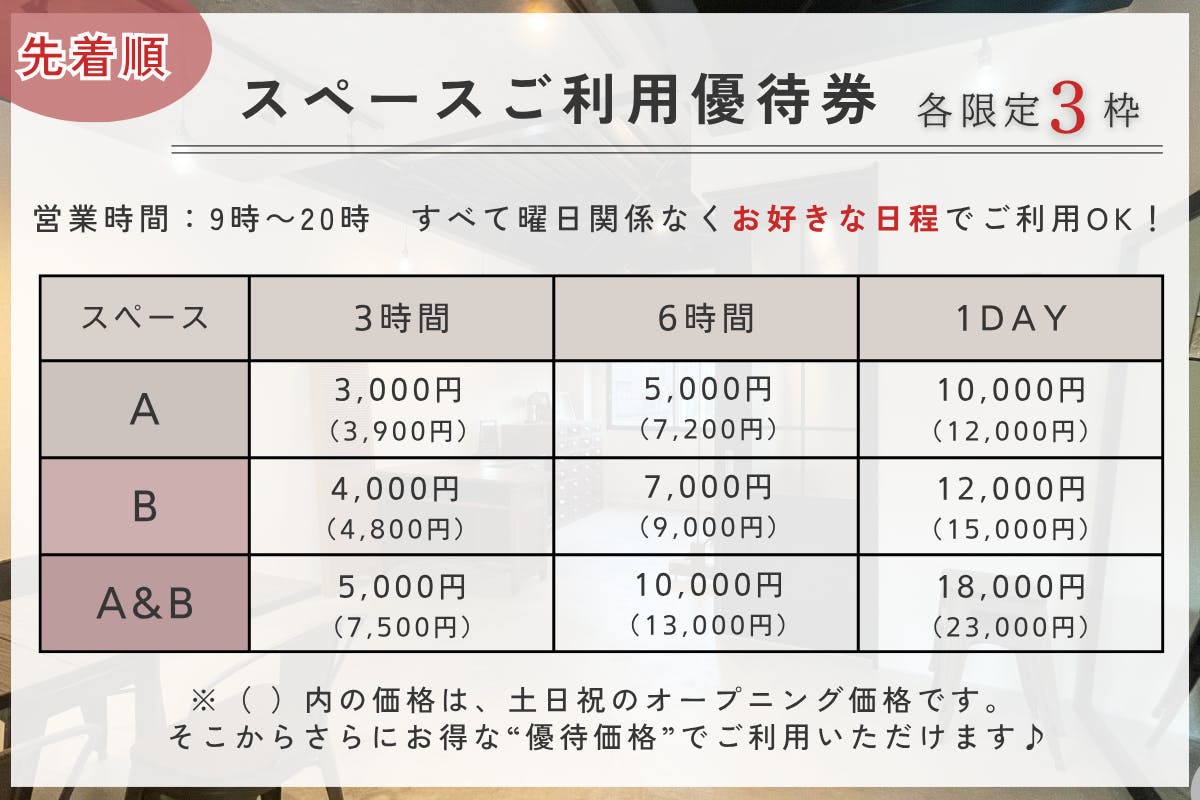 ┗ご希望の日:1DAY(9時~20時)ご希望のスペース利用券(A・B・A&B)