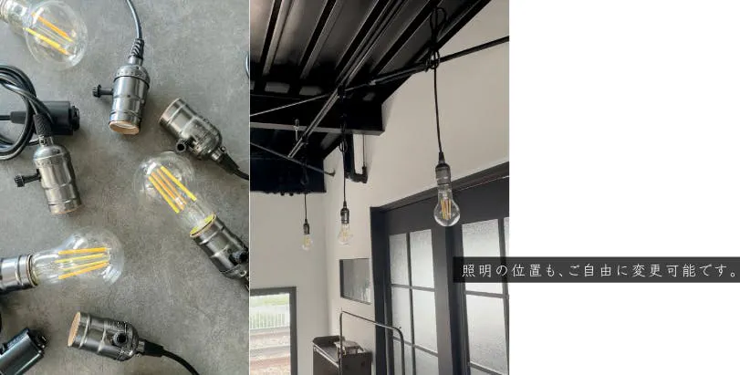 スポットライトと、年代物の照明以外は調光調色可能な照明を使用しています。