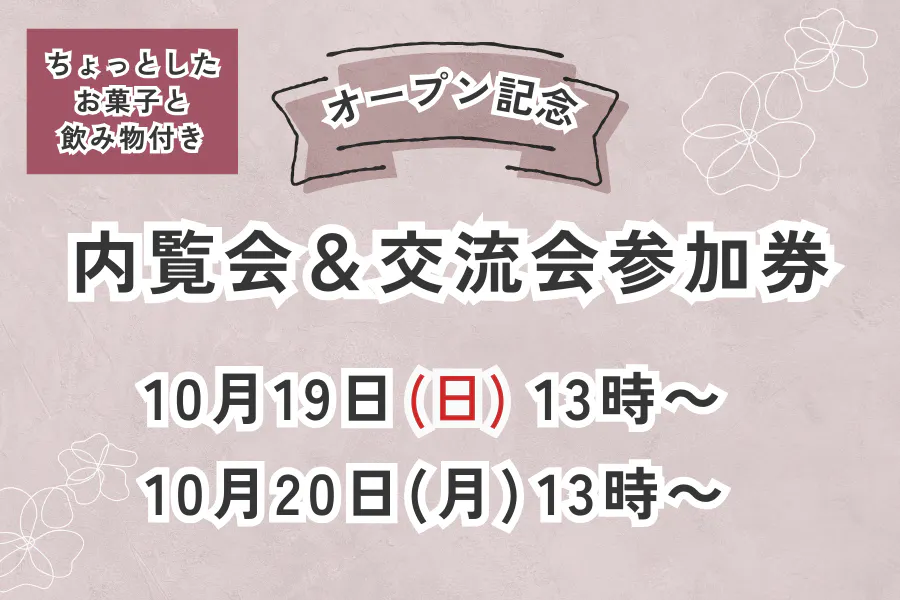 ◆オープン記念の内覧会&交流会参加券→3000円(各回12名まで)
