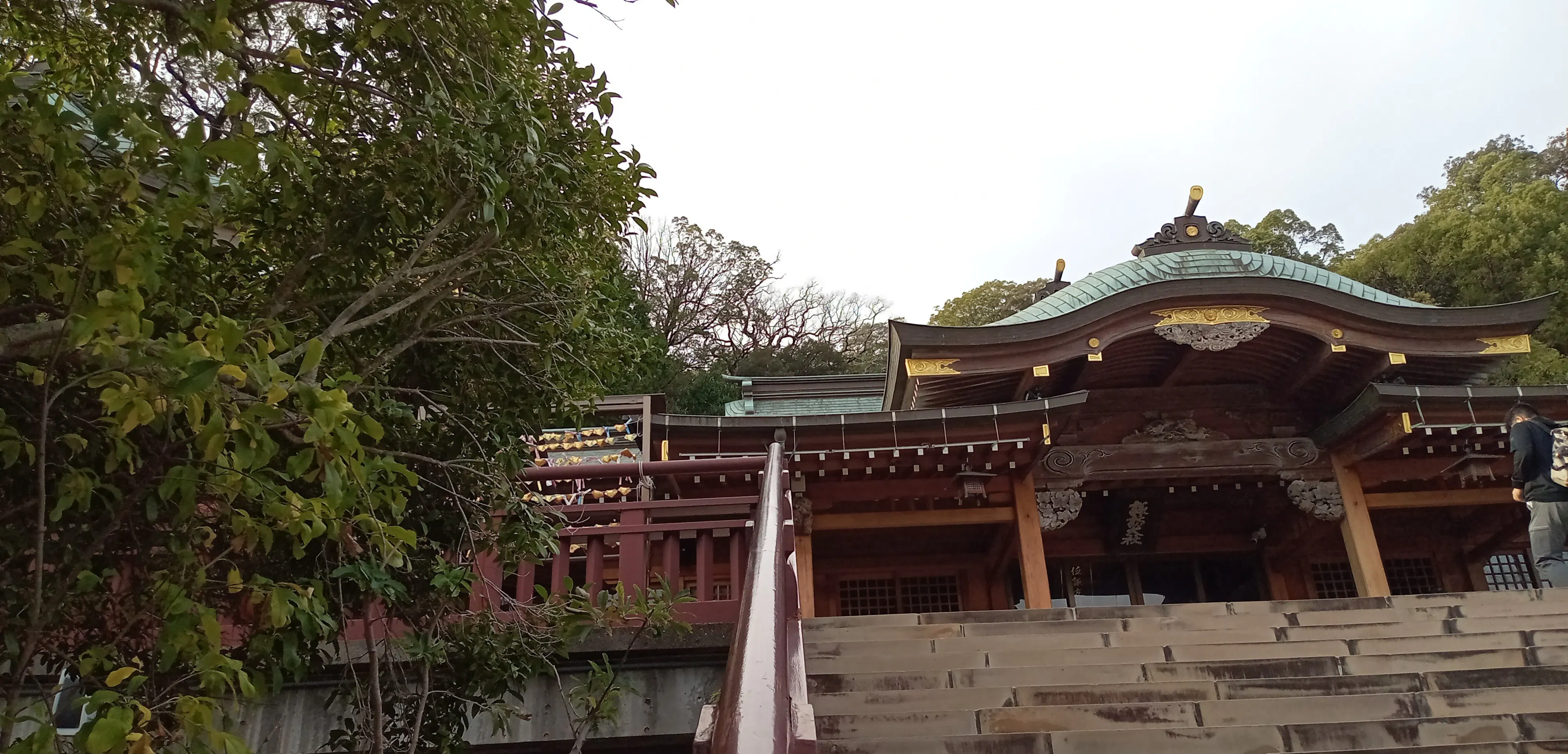 諏訪神社は高台にあり、長い階段を登り切ったあとに振り返ると、長崎の坂の街を一望できる絶景が広がります。
