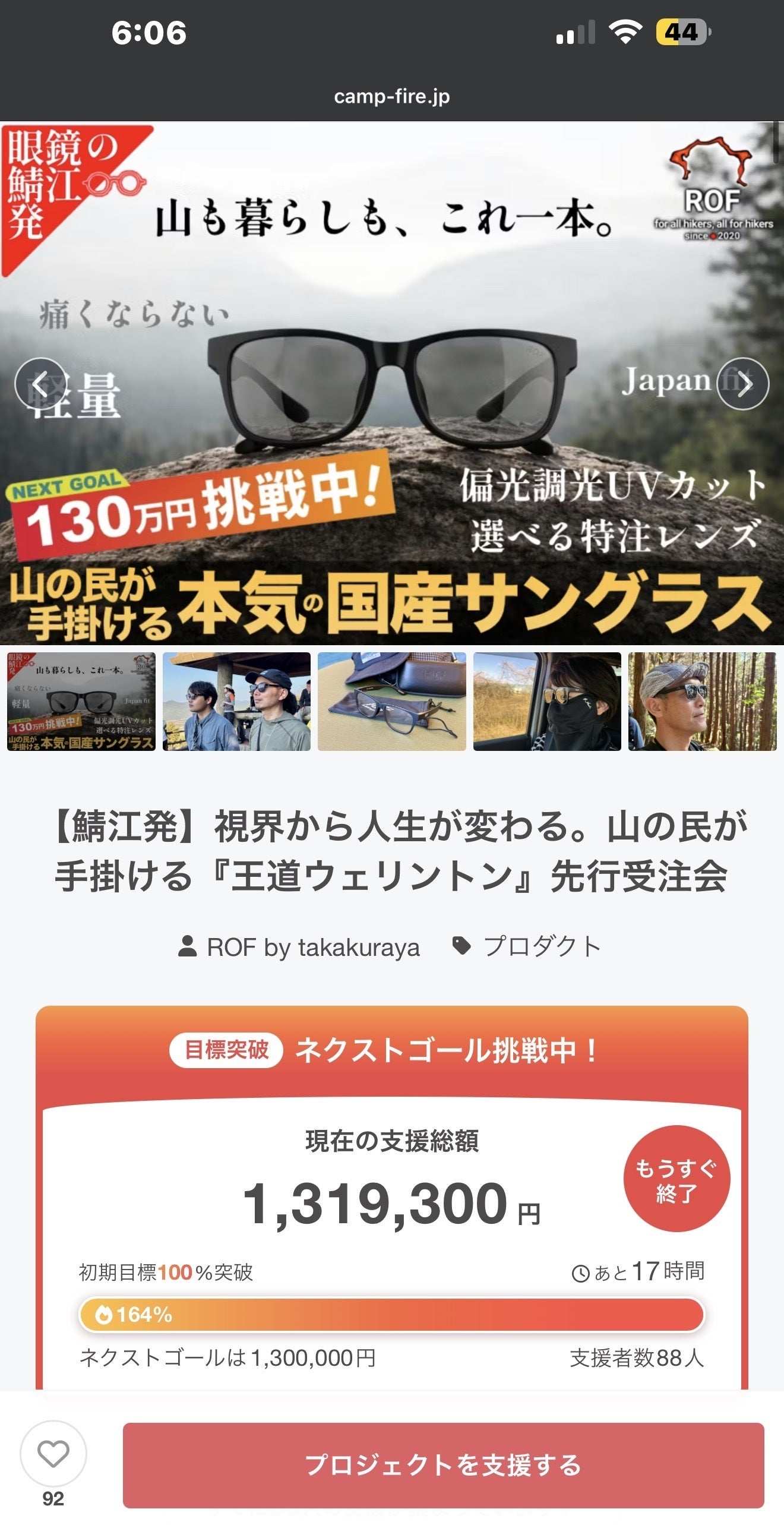 かなり本気でモノの良さにこだわって考えて仕上げています。今回は鯖江の職人さんとサングラスの専門家と、私、山の民という構造で、妥協なく良いものをお届けすることを約束します。