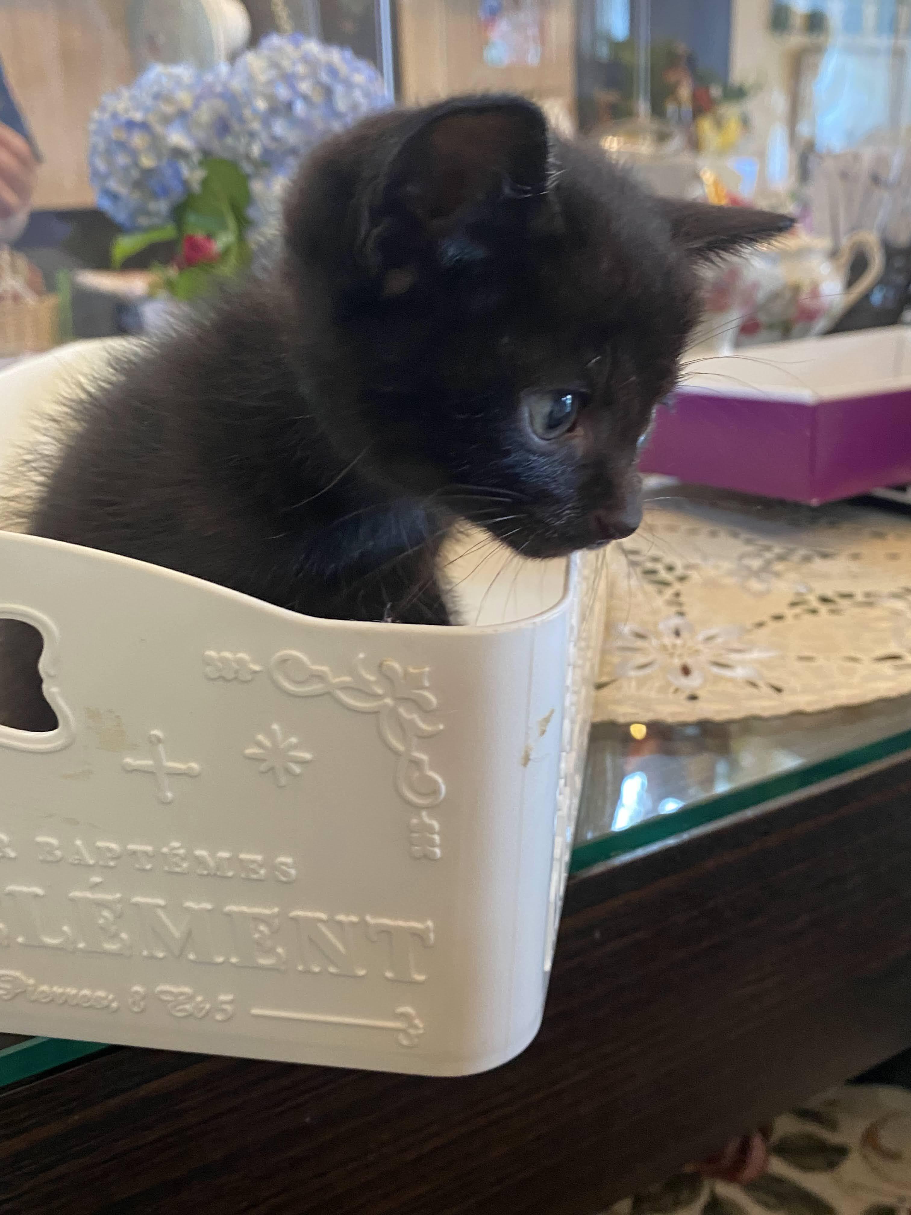 - 最初に保護した黒猫の女の子が「イチゴ」。