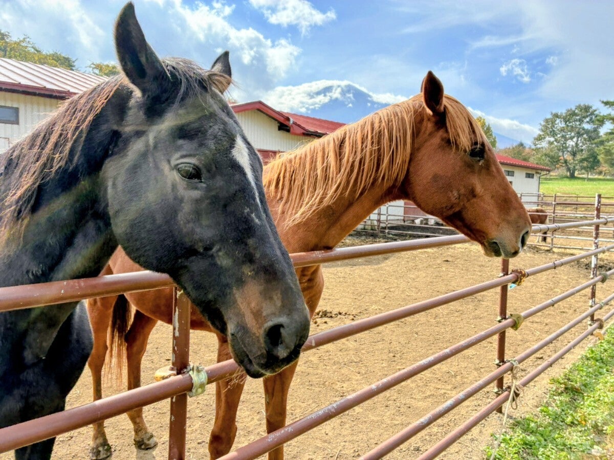 動物(保護猫の飼育・引退した競走馬の飼育): 寒冷で古来から馬の生産が盛んな地域であることから、敷地内には引退した競走馬を飼養する厩舎があり、餌あげ体験も可能です。イベント時には馬車を出しています。