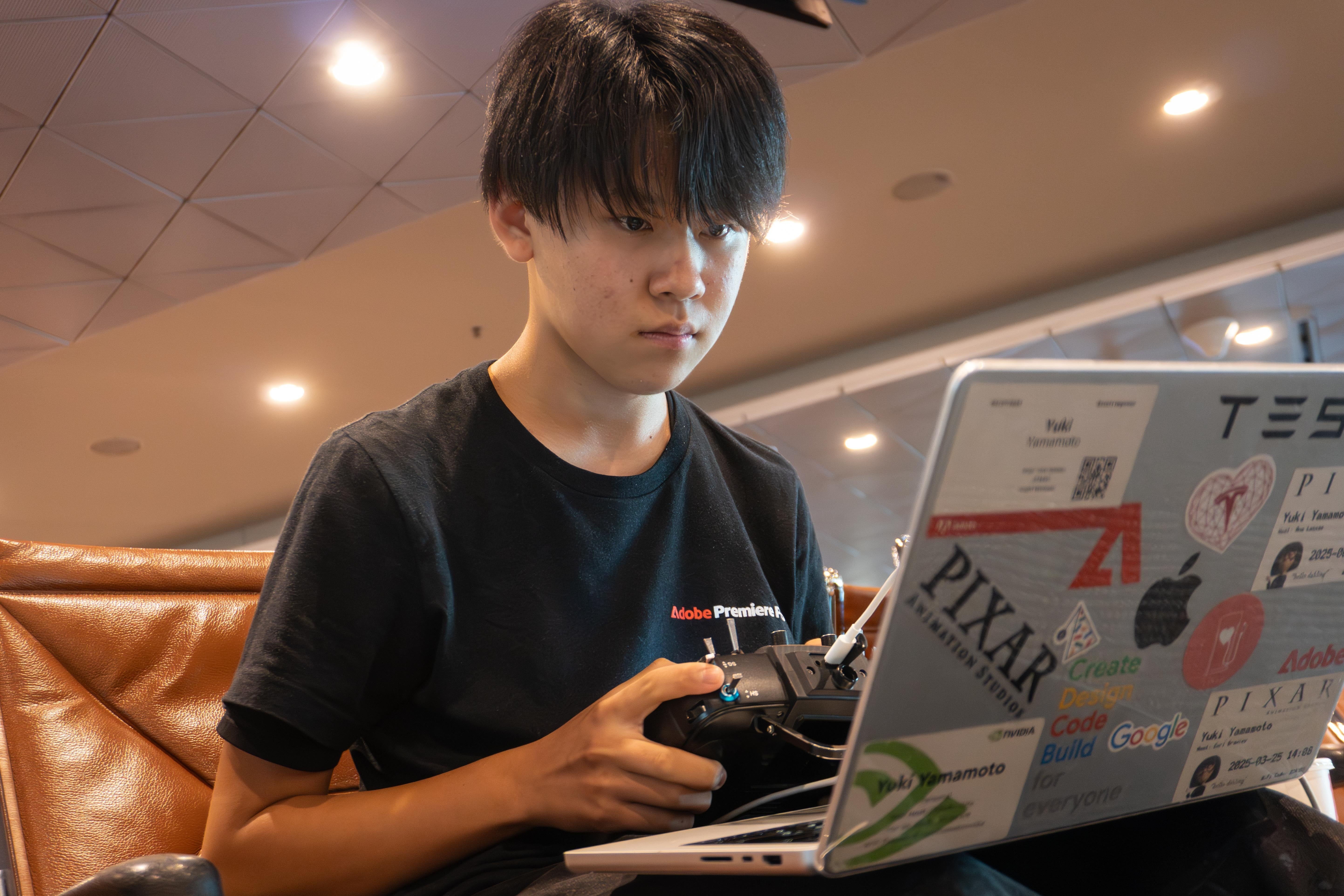 現在高校1年生で、都内の学校に通いながらドローンレースに取り組んでいます。