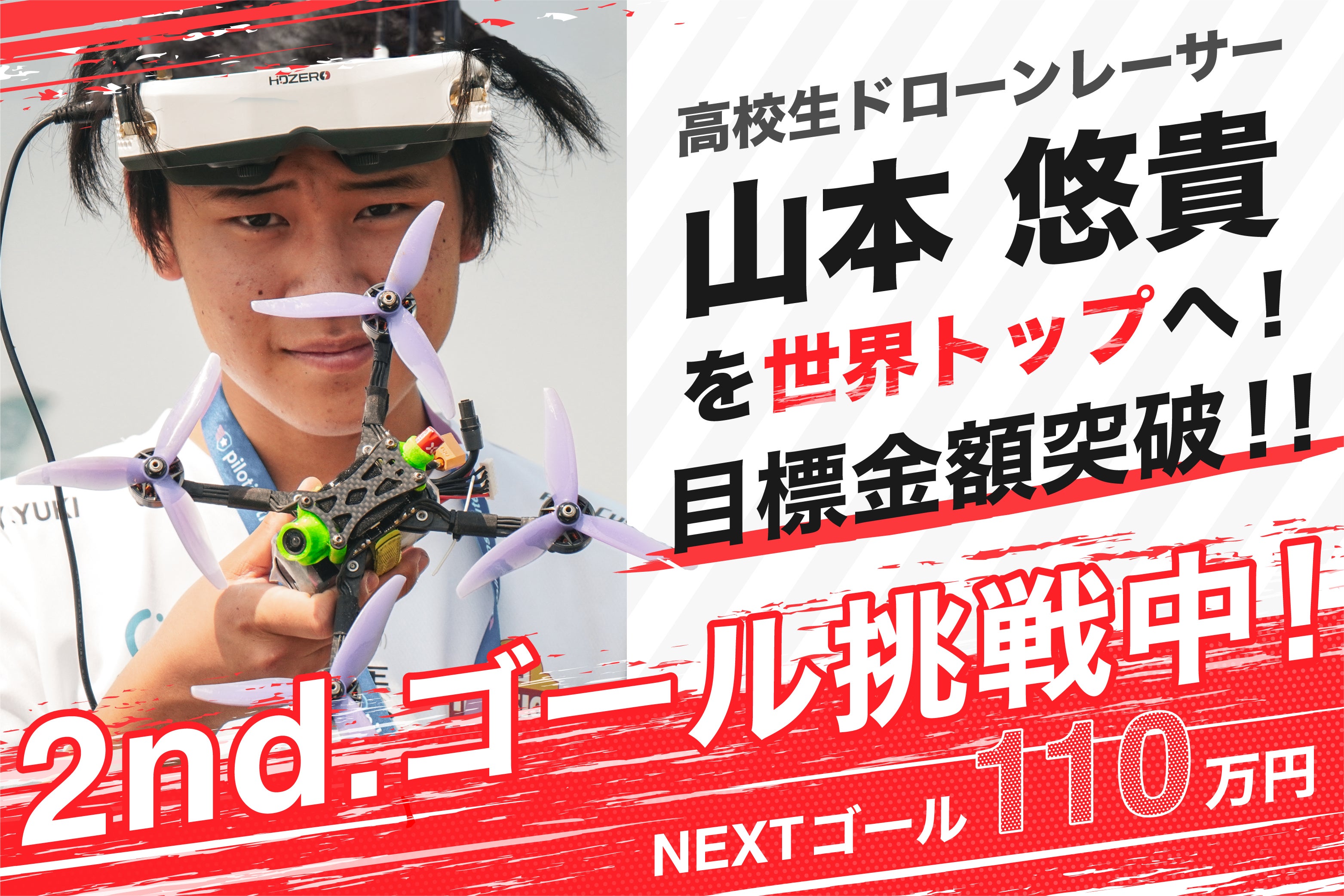 皆さんのご支援が、ただ一人の挑戦を支えるだけでなく、日本から世界に挑むドローンレースの未来を作っていきます。