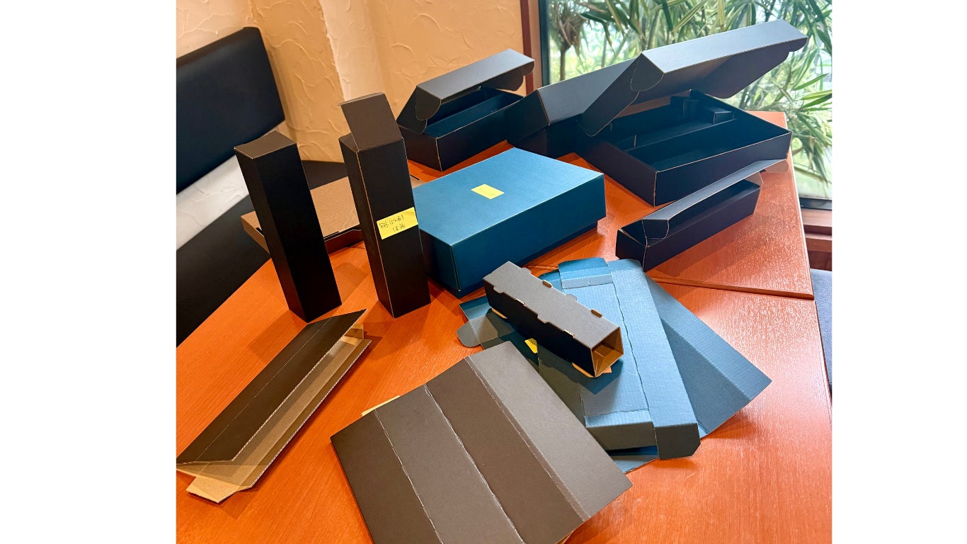 この箱は、単なる梱包材ではなく、手に取った瞬間に「わぁ…」と心が躍り、思わず笑顔になっていただけるよう、質感や色味、開けやすさ、安定感等——細部にこだわり、何度も試作品を持ってきていただいては検討を重ねています。
